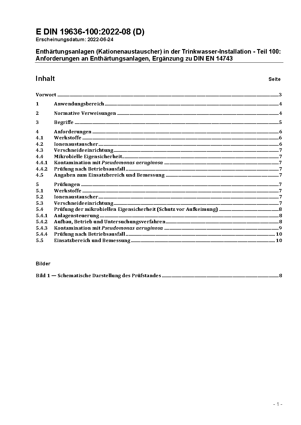 Softeners (cation exchangers) for drinking water installation - Part 100: Requirements for application of softeners in accordance with DIN EN 14743.