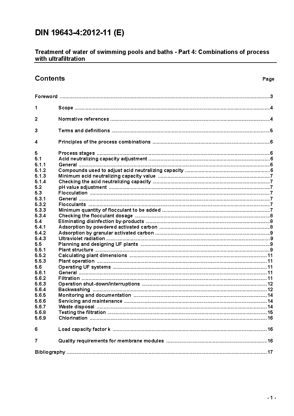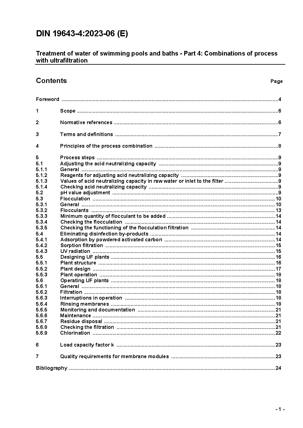 Treatment of water of swimming pools and baths - Part 4: Combinations of process with ultrafiltration.