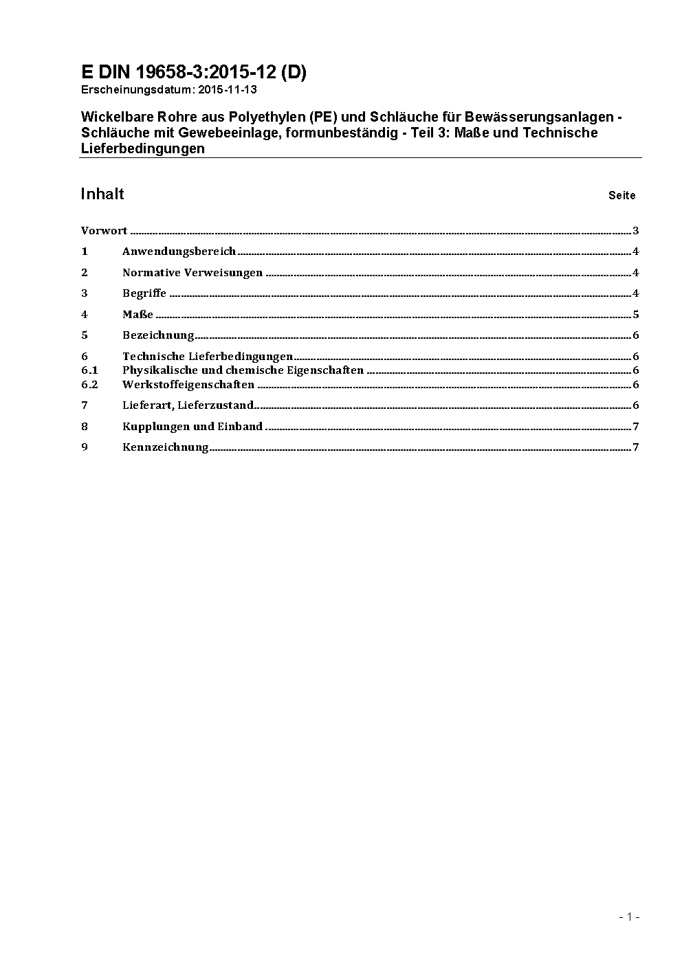 Wickelbare Rohre aus Polyethylen (PE) und Schläuche für Bewässerungsanlagen - Schläuche mit Gewebeeinlage, formunbeständig - Teil 3: Maße und Technische Lieferbedingungen