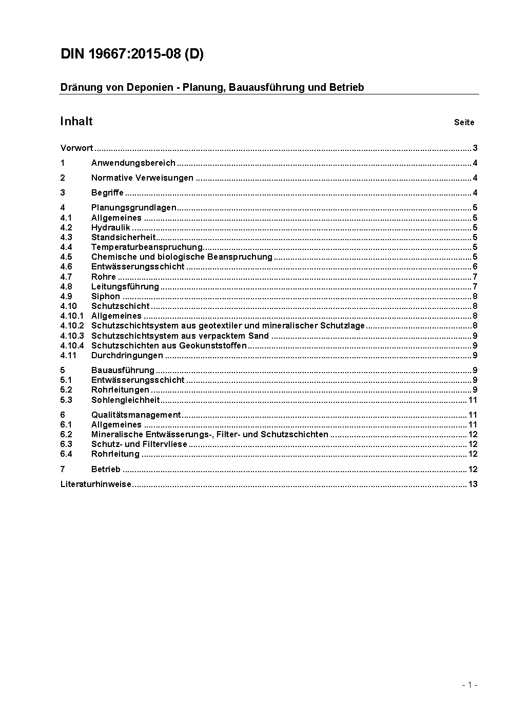 Dränung von Deponien - Planung, Bauausführung und Betrieb / Achtung: Gilt in Verbindung mit DIN 19666 (2001-05)