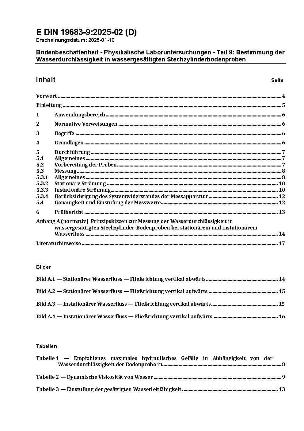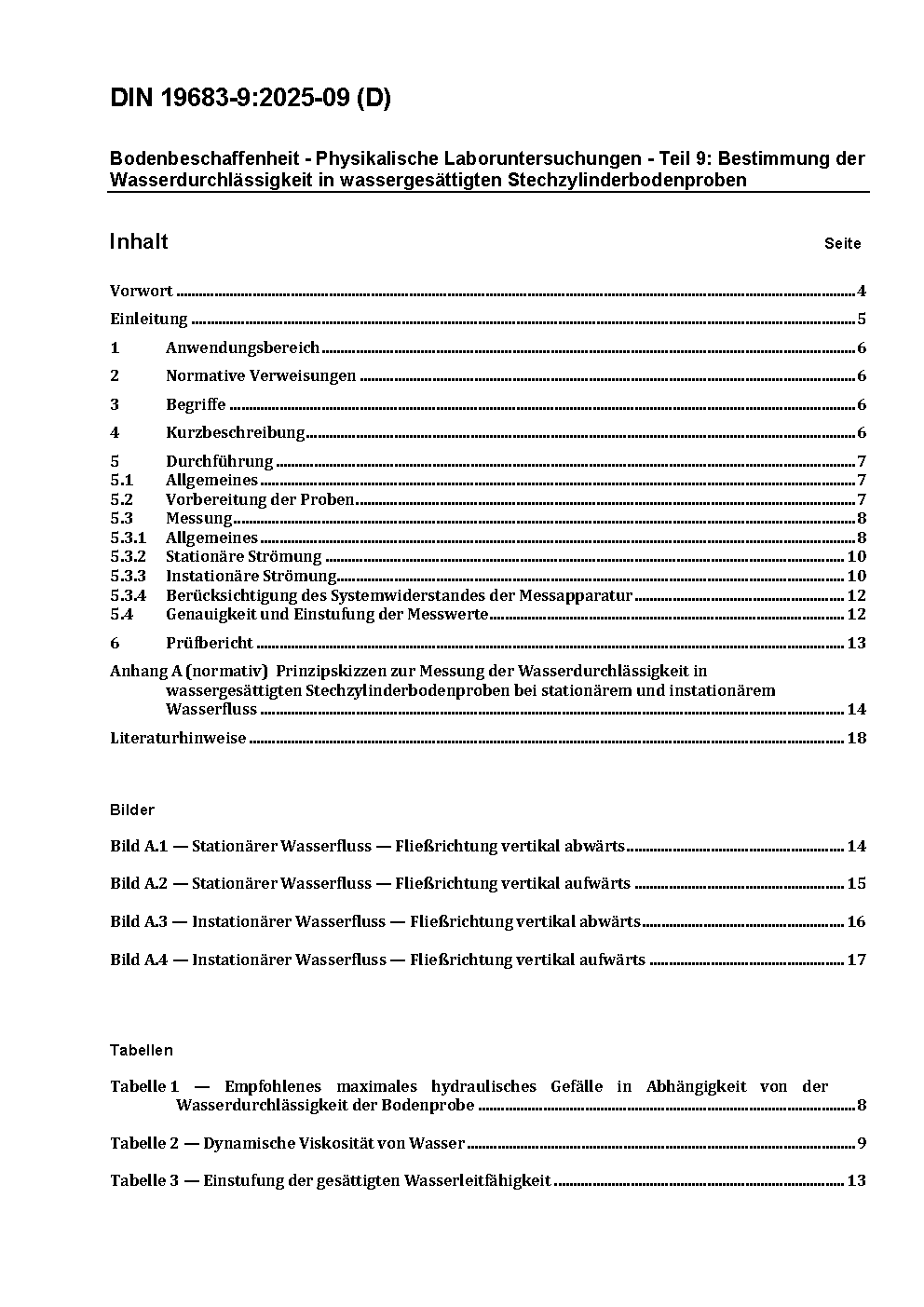 Bodenbeschaffenheit - Physikalische Laboruntersuchungen - Teil 9: Bestimmung der Wasserdurchlässigkeit in wassergesättigten Stechzylinderbodenproben