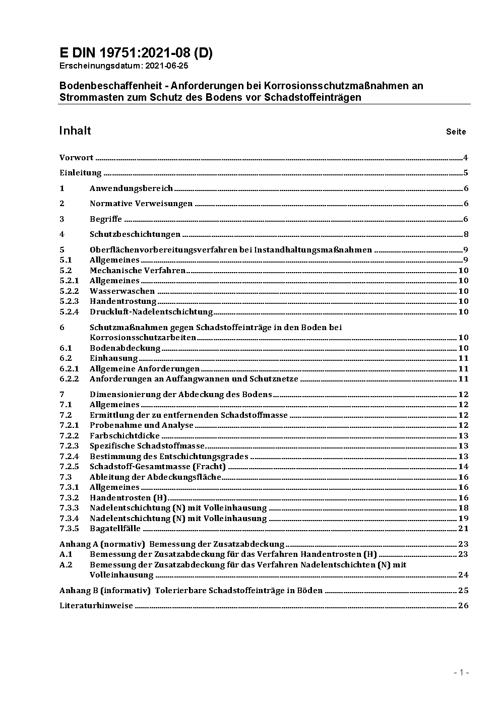 Bodenbeschaffenheit - Anforderungen bei Korrosionsschutzmaßnahmen an Strommasten zum Schutz des Bodens vor Schadstoffeinträgen