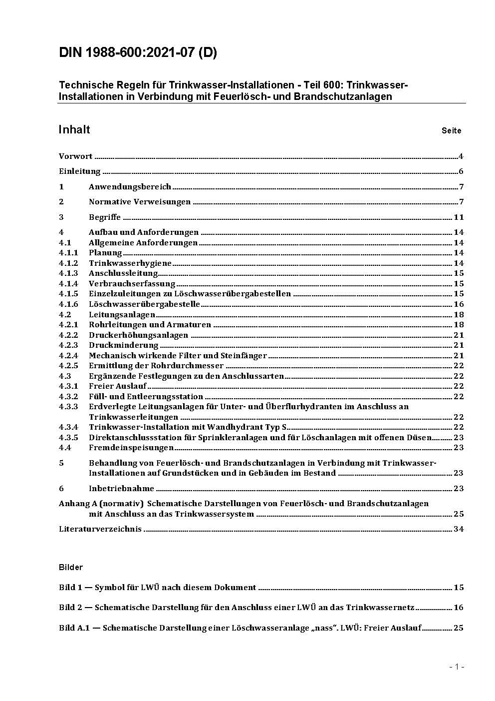 Technische Regeln für Trinkwasser-Installationen - Teil 600: Trinkwasser-Installationen in Verbindung mit Feuerlösch- und Brandschutzanlagen; Technische Regel des DVGW