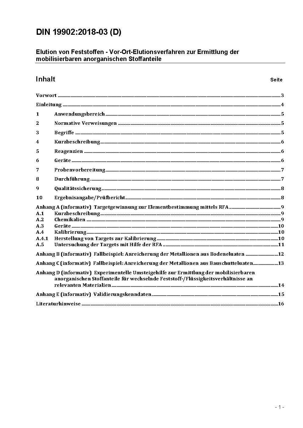 Elution von Feststoffen - Vor-Ort-Elutionsverfahren zur Ermittlung der mobilisierbaren anorganischen Stoffanteile