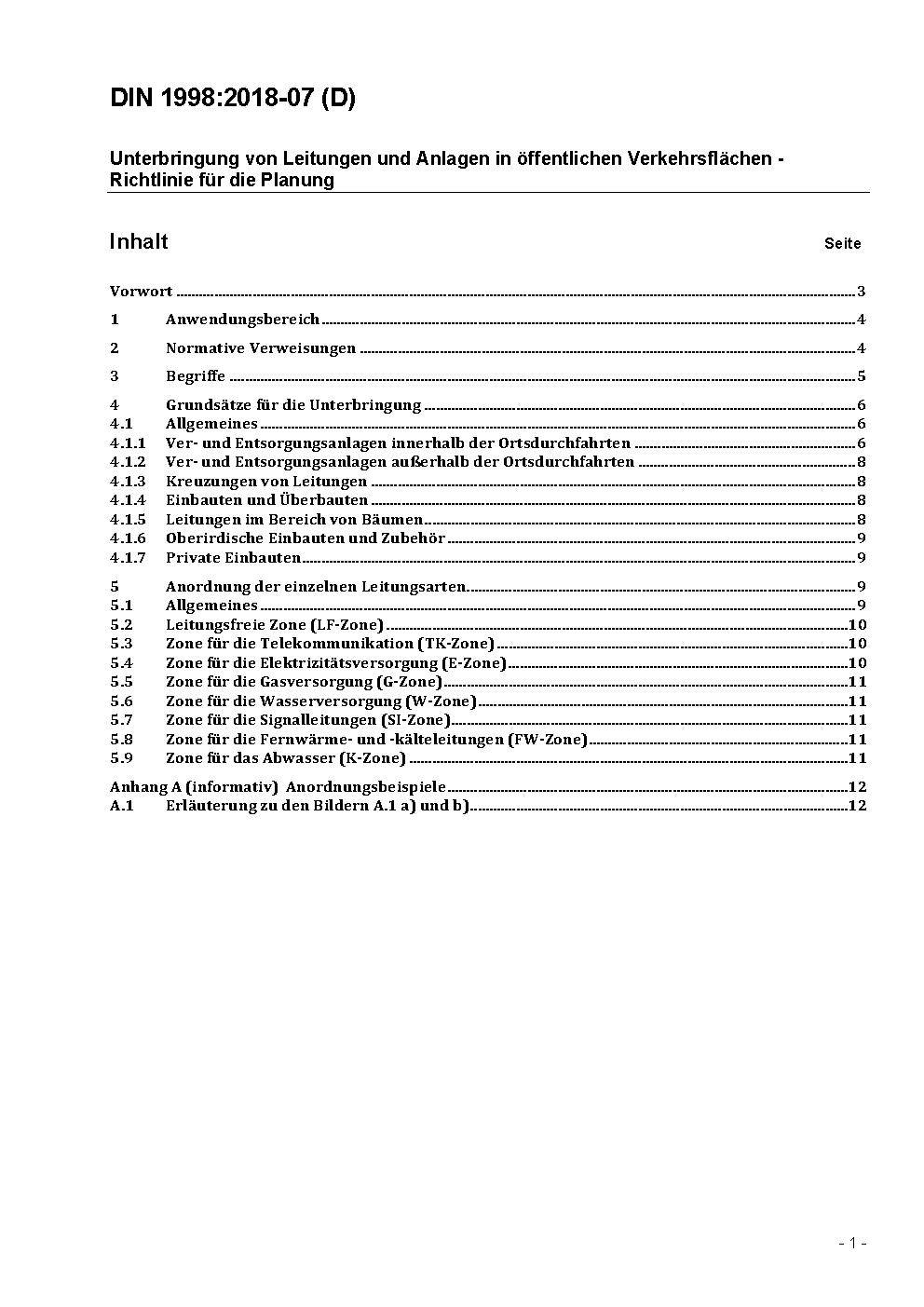Unterbringung von Leitungen und Anlagen in öffentlichen Verkehrsflächen - Richtlinie für die Planung