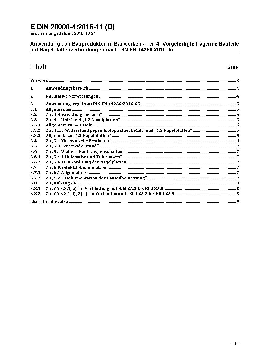 Anwendung von Bauprodukten in Bauwerken - Teil 4: Vorgefertigte tragende Bauteile mit Nagelplattenverbindungen nach DIN EN 14250:2010-05