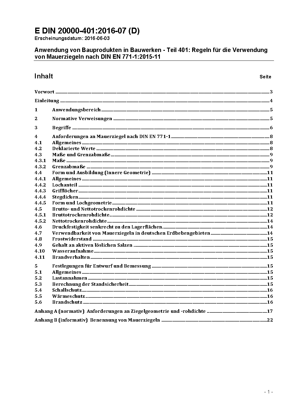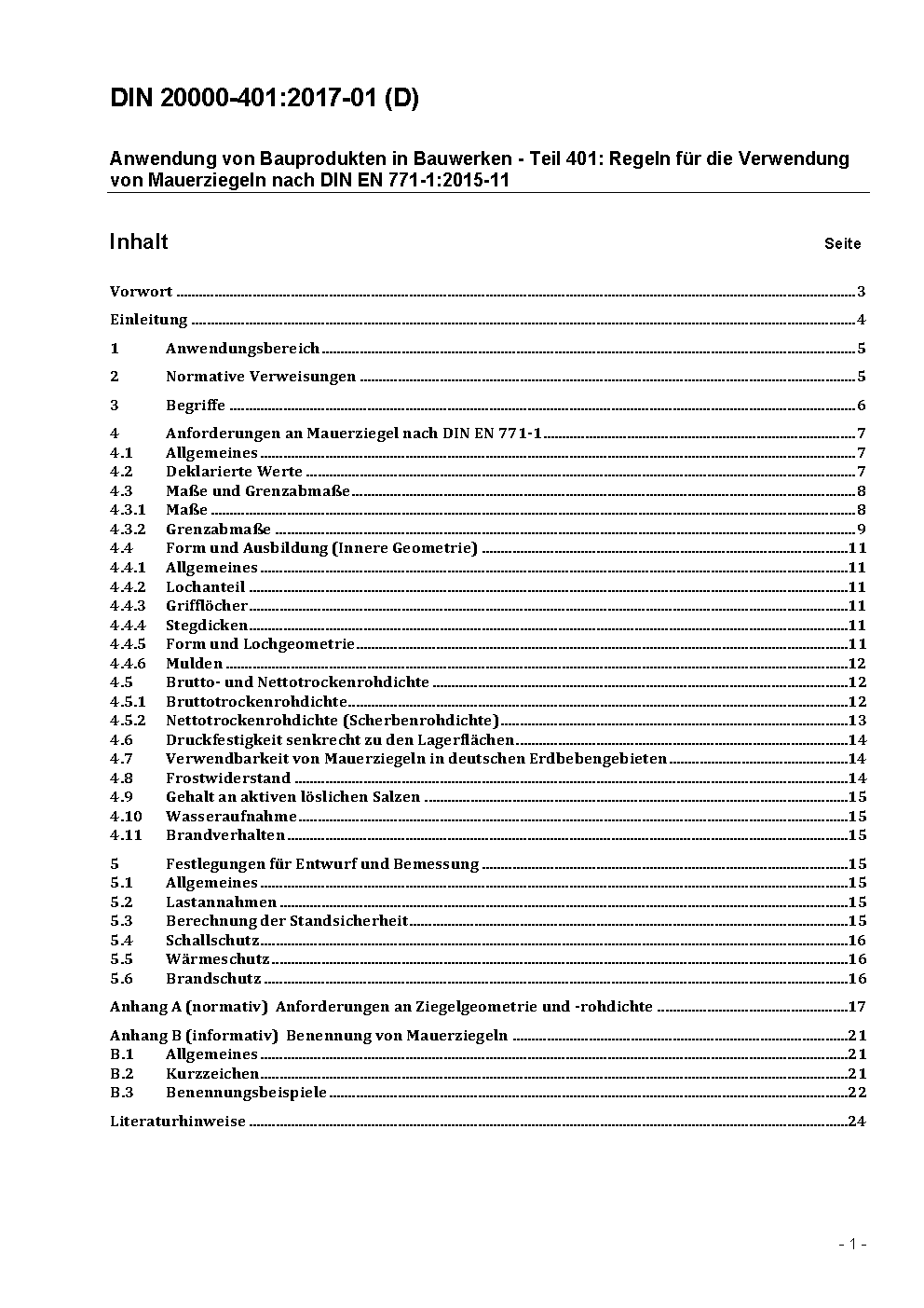 Anwendung von Bauprodukten in Bauwerken - Teil 401: Regeln für die Verwendung von Mauerziegeln nach DIN EN 771-1:2011-07