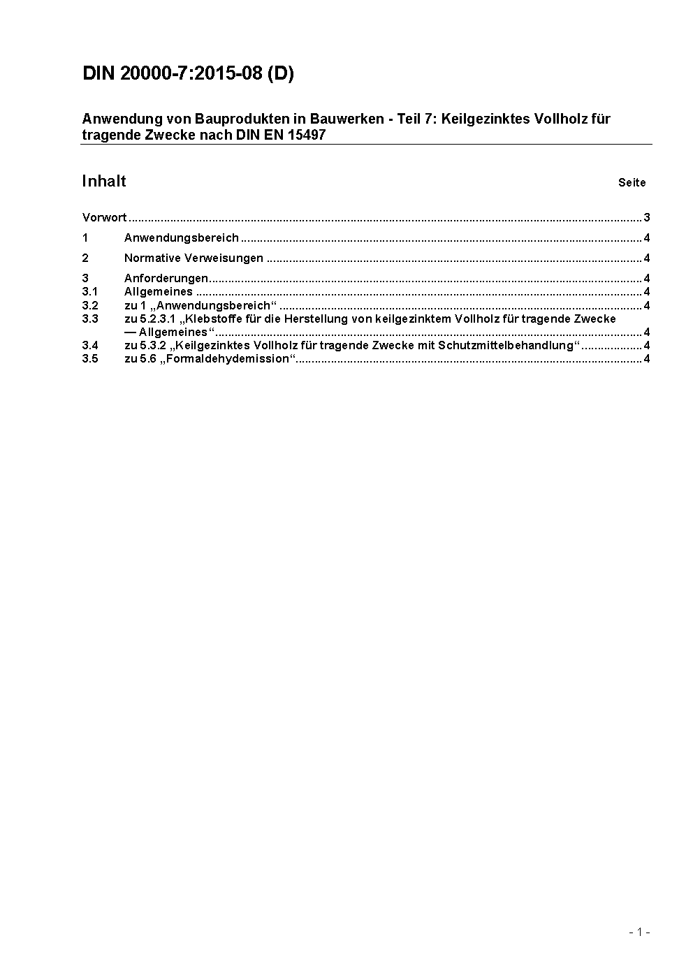 Anwendung von Bauprodukten in Bauwerken - Teil 7: Keilgezinktes Vollholz für tragende Zwecke nach DIN EN 15497:2014-07