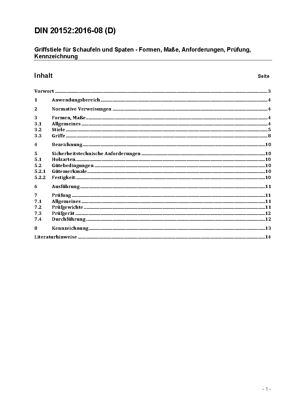Griffstiele für Schaufeln und Spaten - Formen, Maße, Anforderungen, Prüfung, Kennzeichnung / Achtung: Daneben gilt DIN 20152 (1989-03) noch bis 2017-01-31.