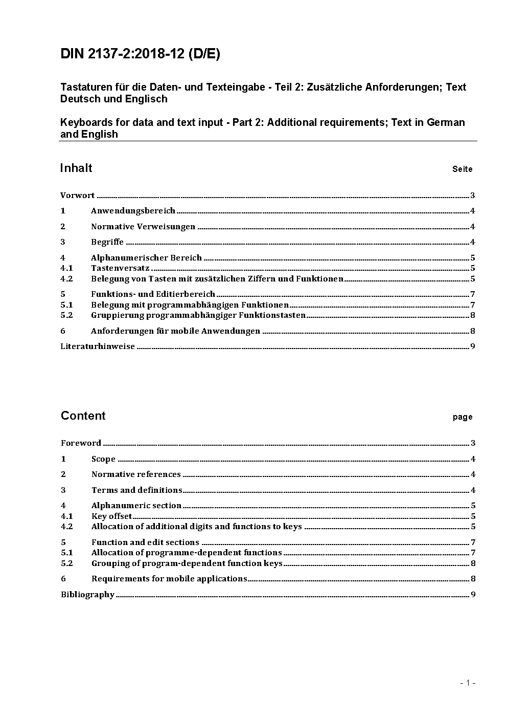 Keyboards for data and text input - Part 2: Additional requirements; Text in German and English