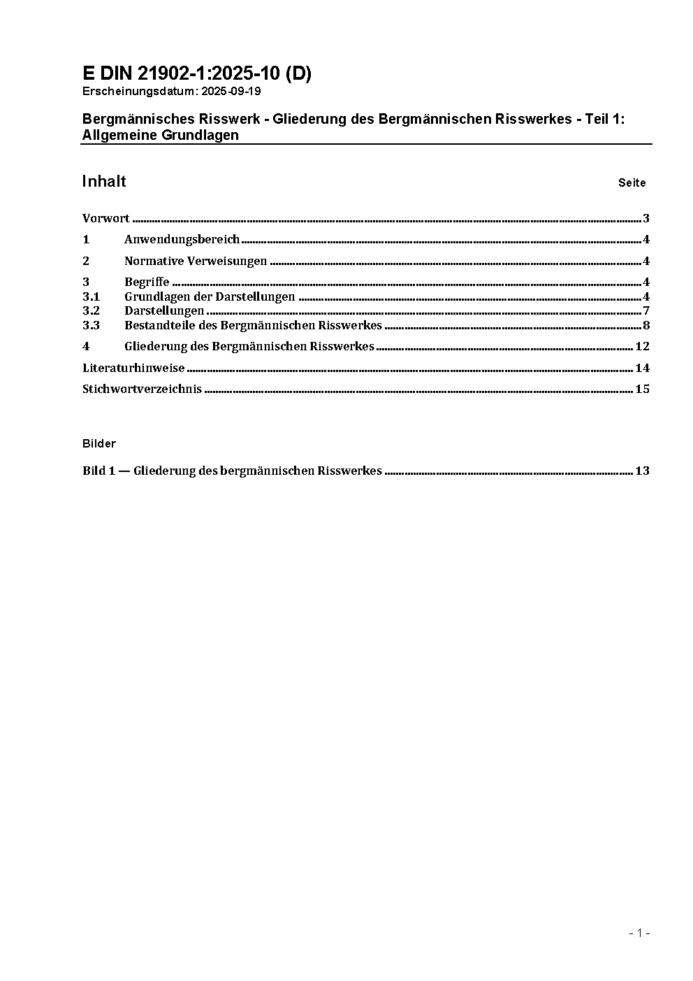 Bergmännisches Risswerk - Gliederung des Bergmännischen Risswerkes - Teil 1: Allgemeine Grundlagen