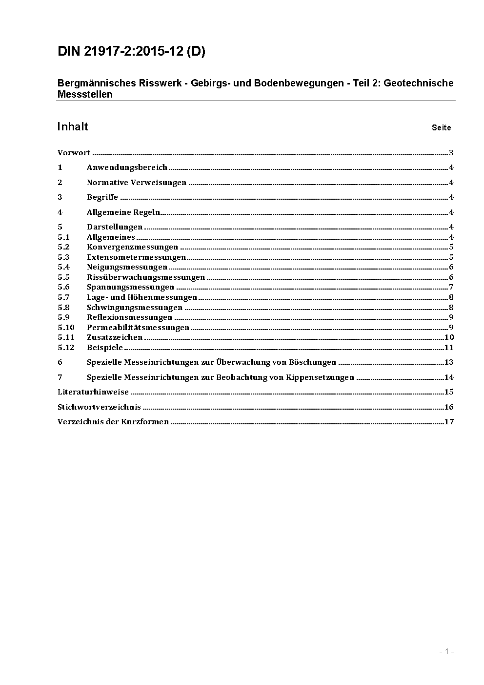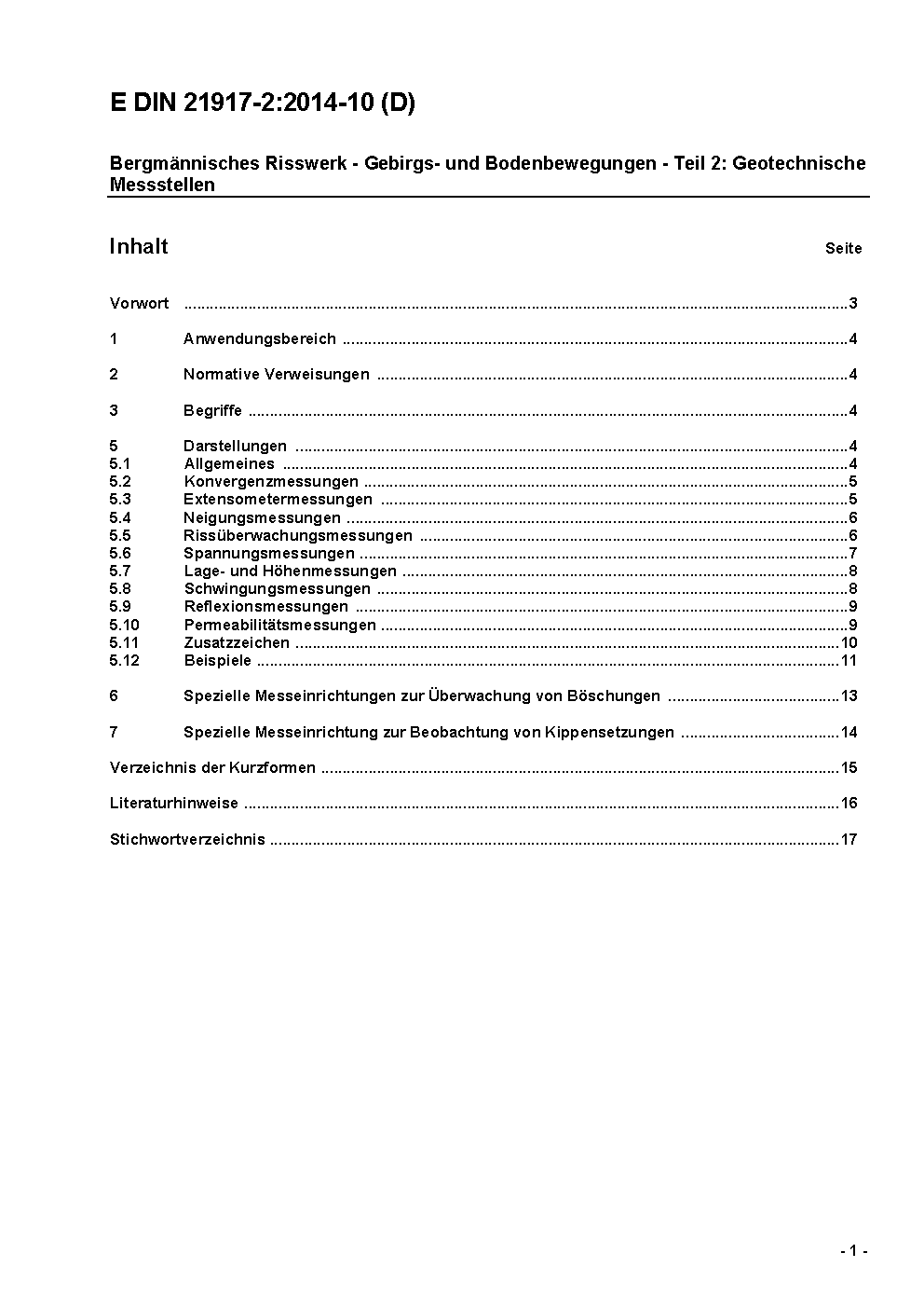 Bergmännisches Risswerk - Gebirgs- und Bodenbewegungen - Teil 2: Geomechanische Meßstellen