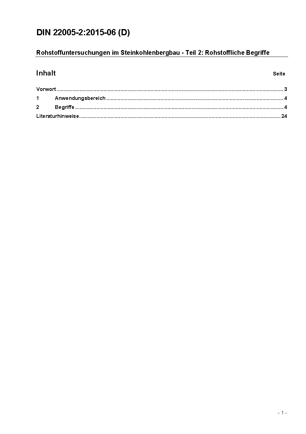 Investigations of the raw material in hard-coal-mining; terms relating to raw material