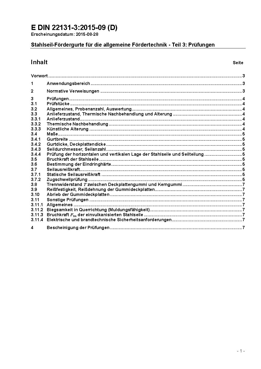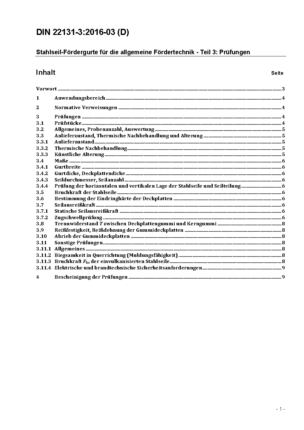 Stahlseil-Fördergurte für die allgemeine Fördertechnik - Teil 3: Prüfungen