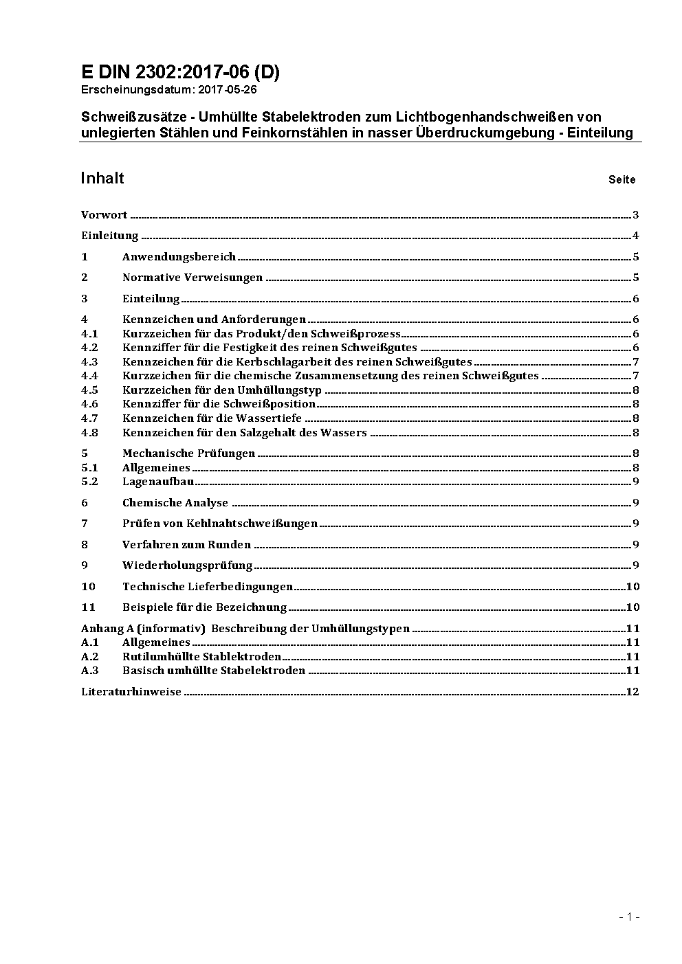 Schweißzusätze - Umhüllte Stabelektroden zum Lichtbogenhandschweißen von unlegierten Stählen und Feinkornstählen in nasser Überdruckumgebung - Einteilung