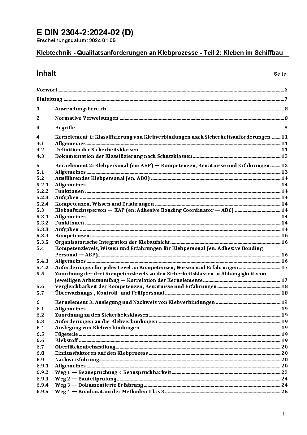 Klebtechnik - Qualitätsanforderungen an Klebprozesse - Teil 2: Kleben im Schiffbau