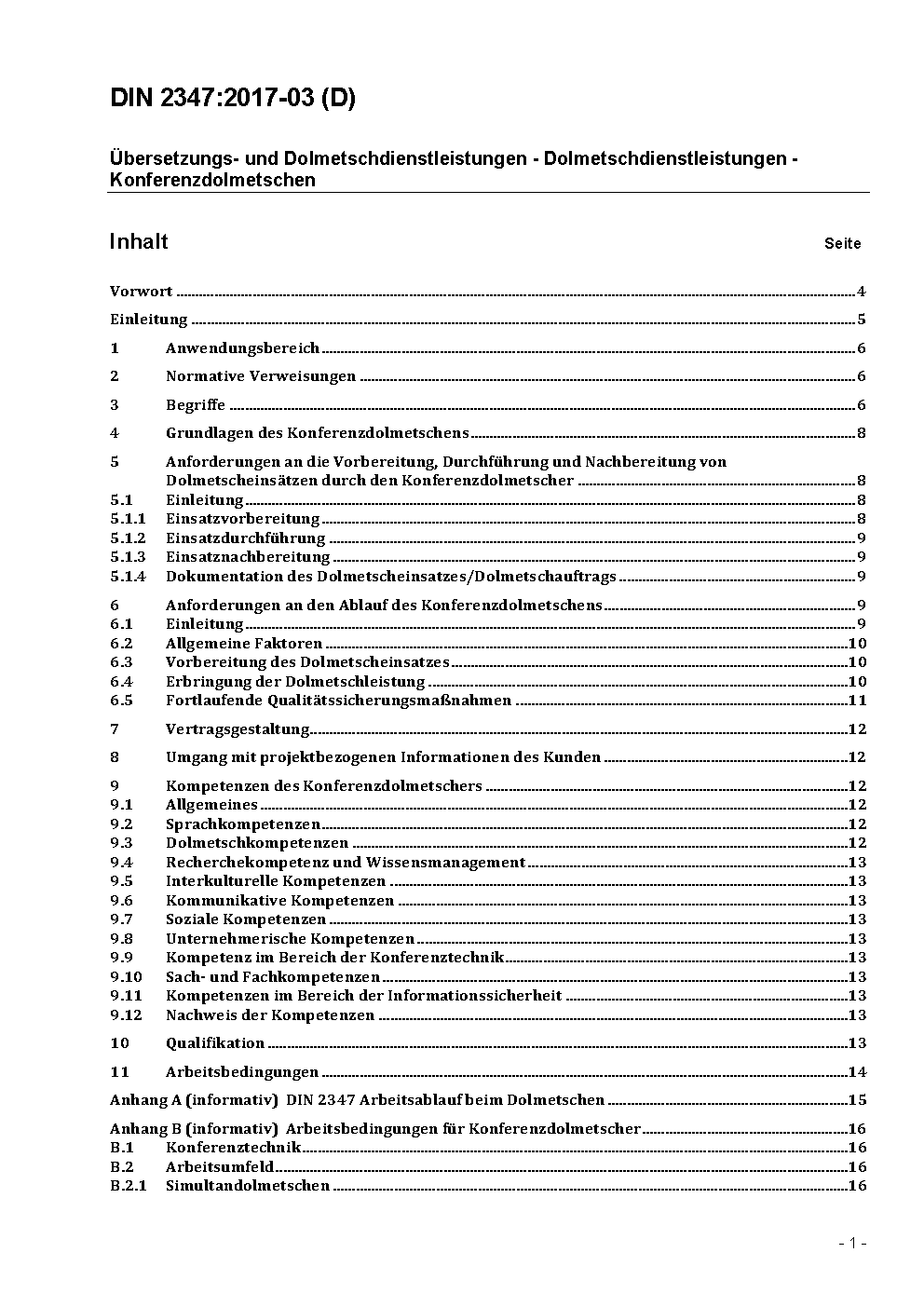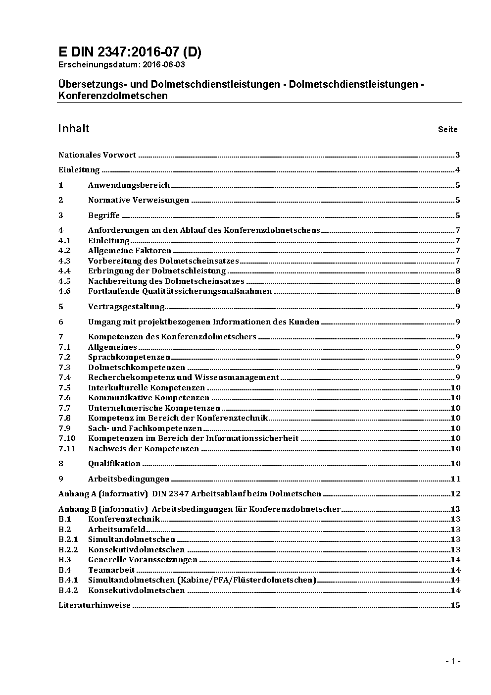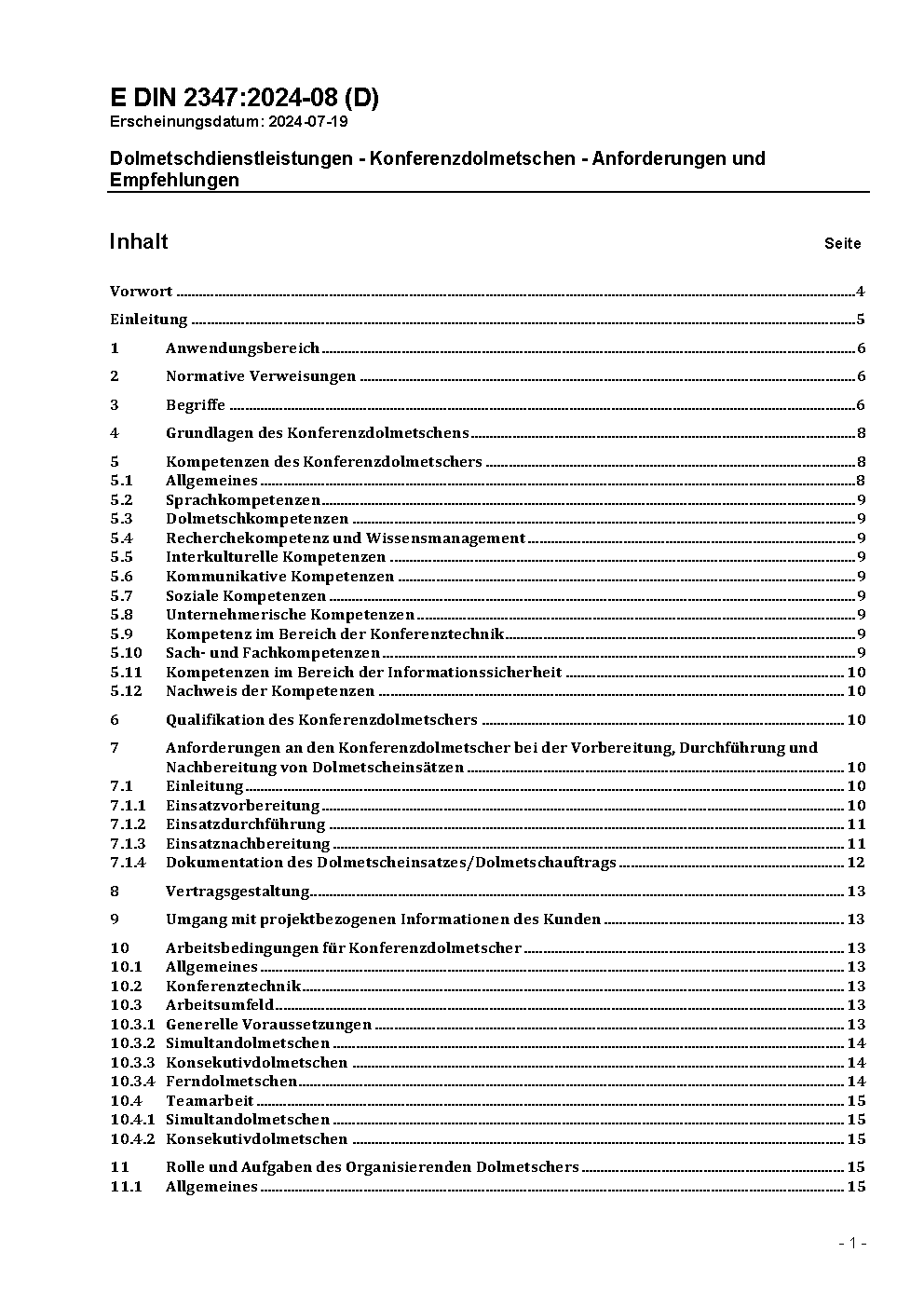Dolmetschdienstleistungen - Konferenzdolmetschen - Anforderungen und Empfehlungen