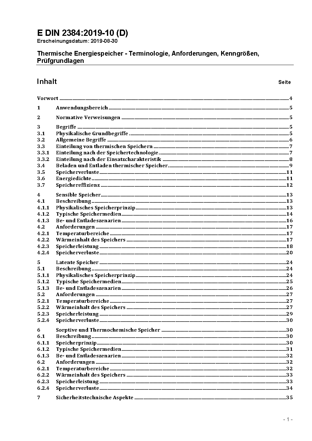 Thermische Energiespeicher - Terminologie, Anforderungen, Kenngrößen, Prüfgrundlagen