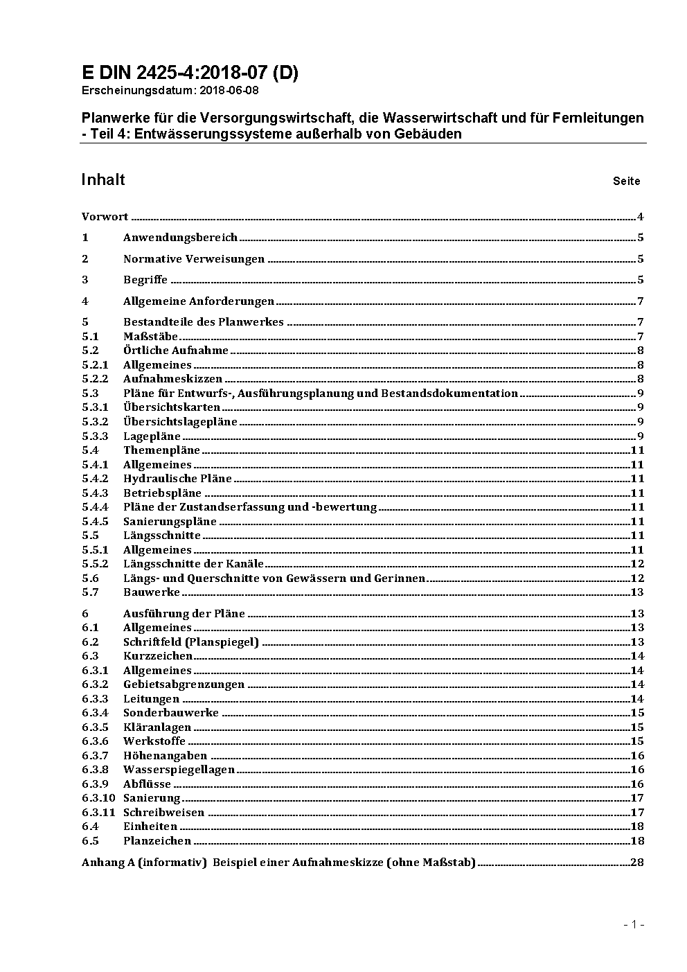 Planwerke für die Versorgungswirtschaft, die Wasserwirtschaft und für Fernleitungen - Teil 4: Entwässerungssysteme außerhalb von Gebäuden