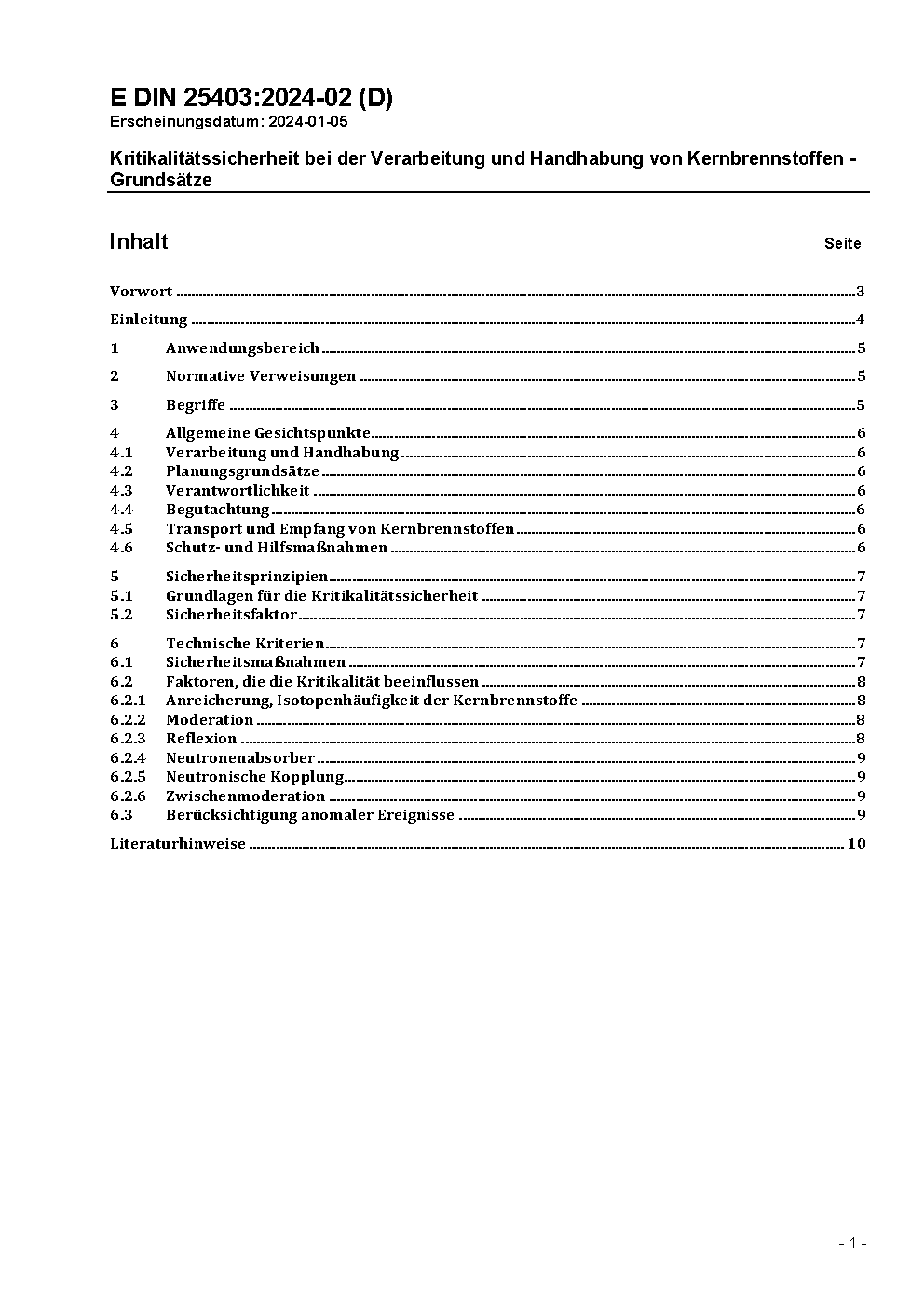 Kritikalitätssicherheit bei der Verarbeitung und Handhabung von Kernbrennstoffen - Grundsätze