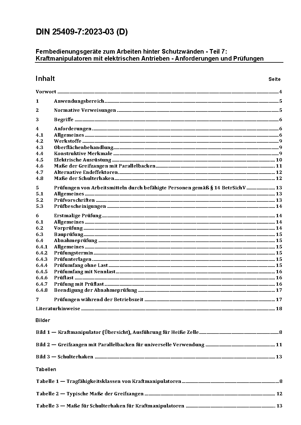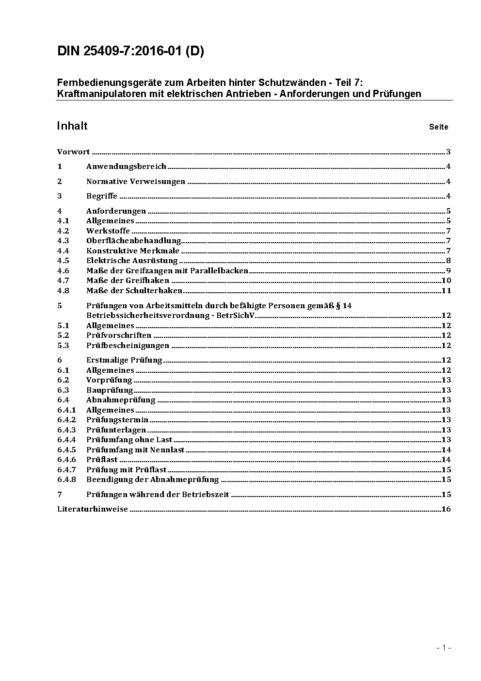 Fernbedienungsgeräte zum Arbeiten hinter Schutzwänden - Teil 7: Kraftmanipulatoren mit elektrischen Antrieben; Anforderungen und Prüfungen