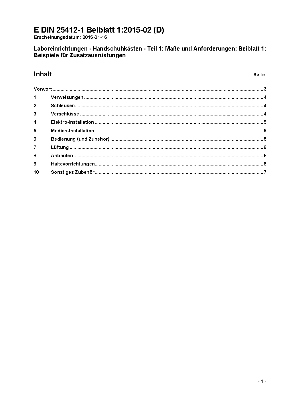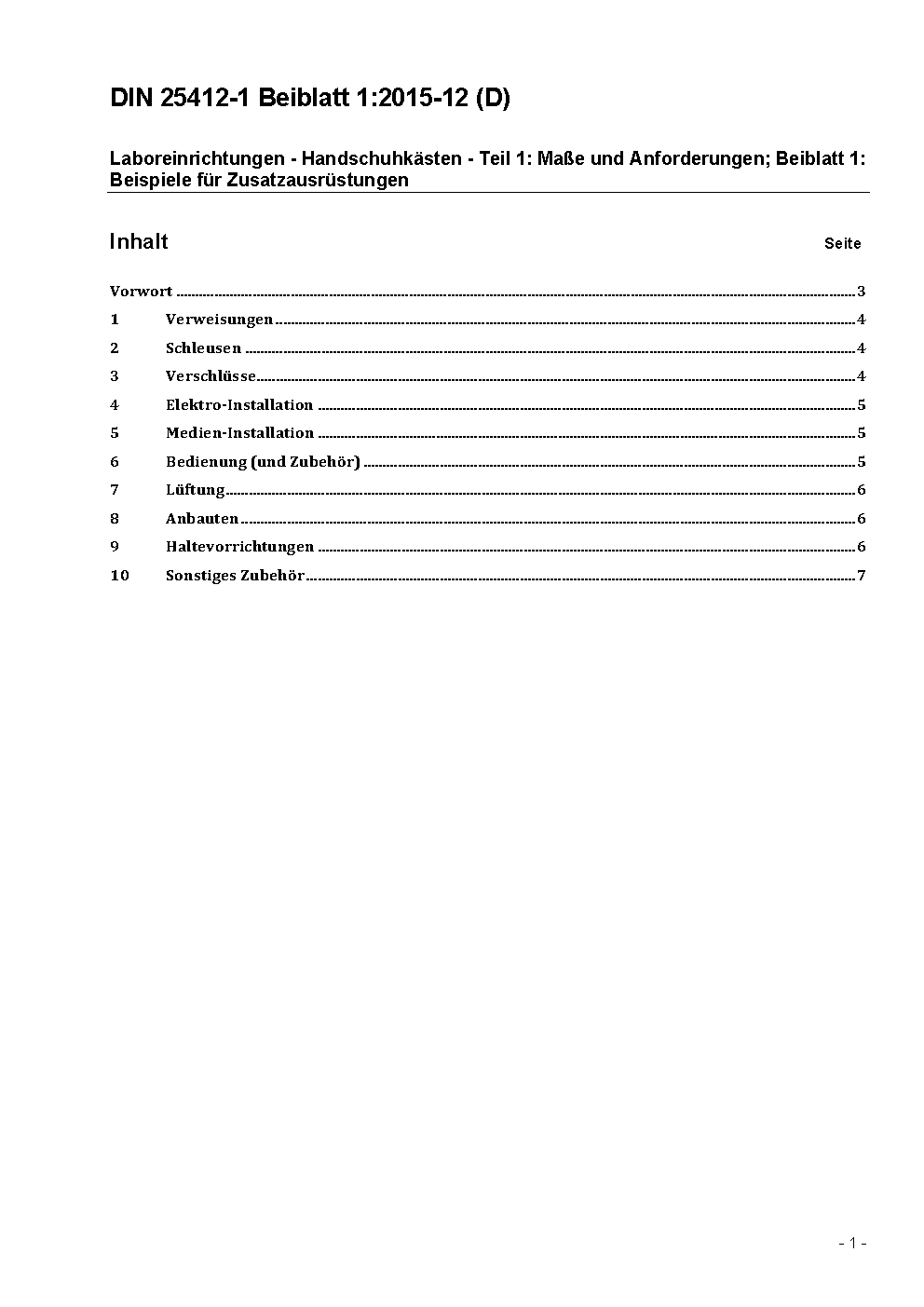 Laboreinrichtungen - Handschuhkästen - Teil 1: Maße und Anforderungen; Beiblatt 1: Beispiele für Zusatzausrüstungen