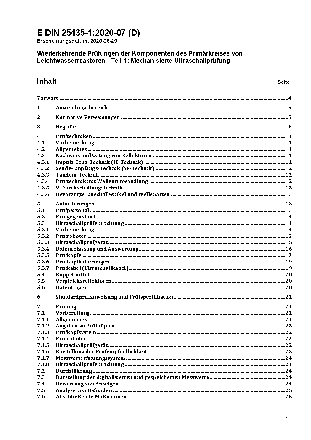 Wiederkehrende Prüfungen der Komponenten des Primärkreises von Leichtwasserreaktoren - Teil 1: Mechanisierte Ultraschallprüfung