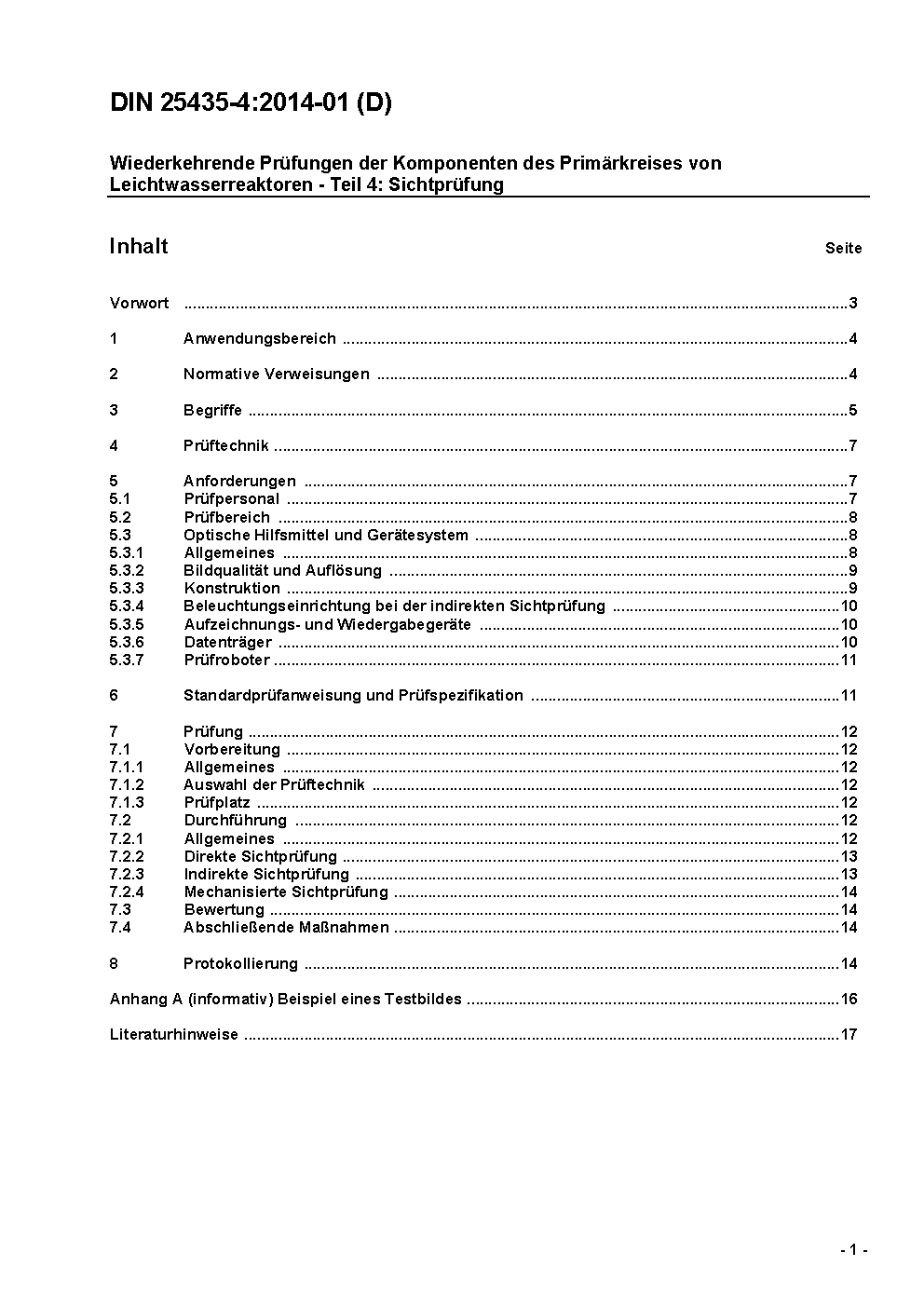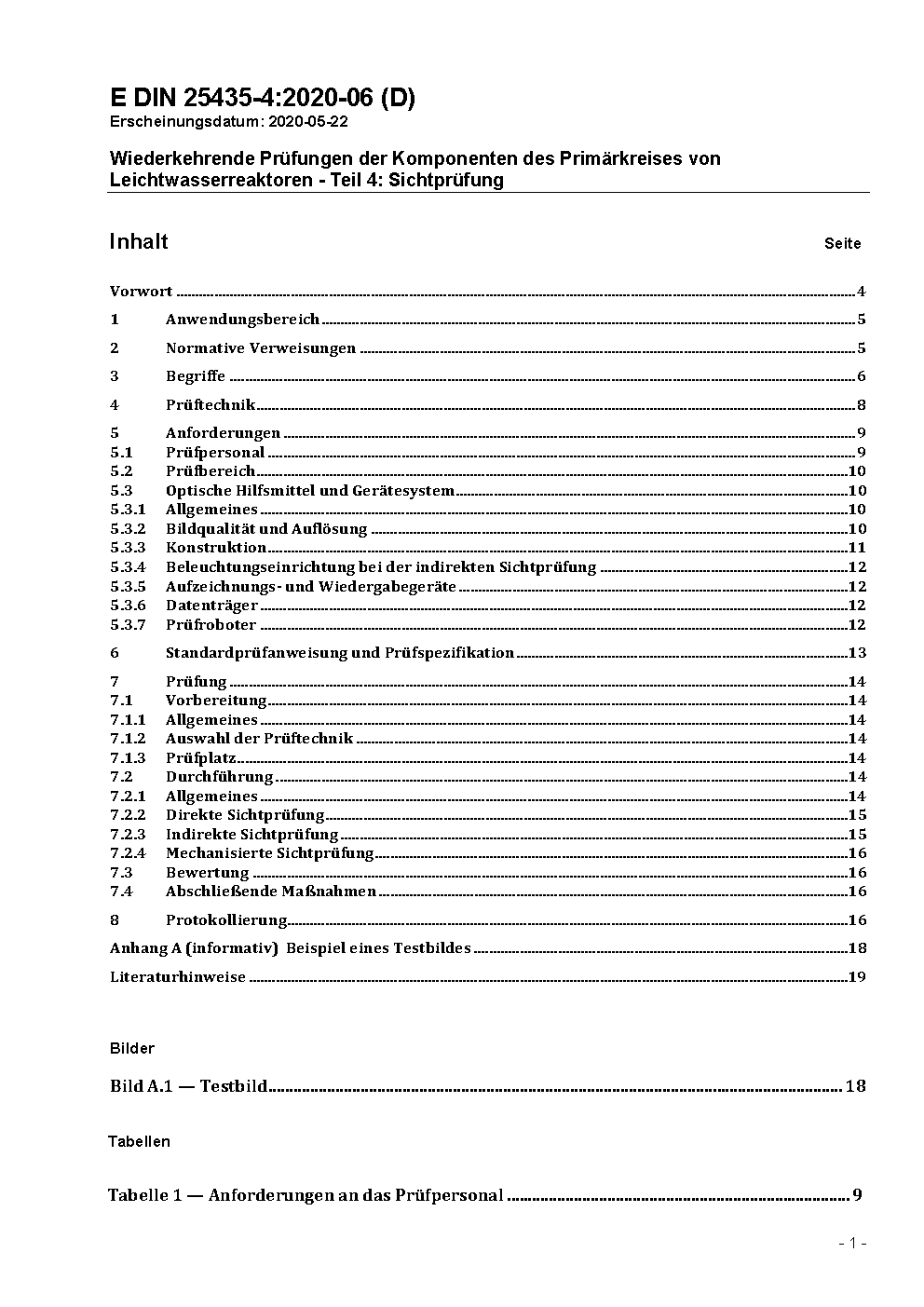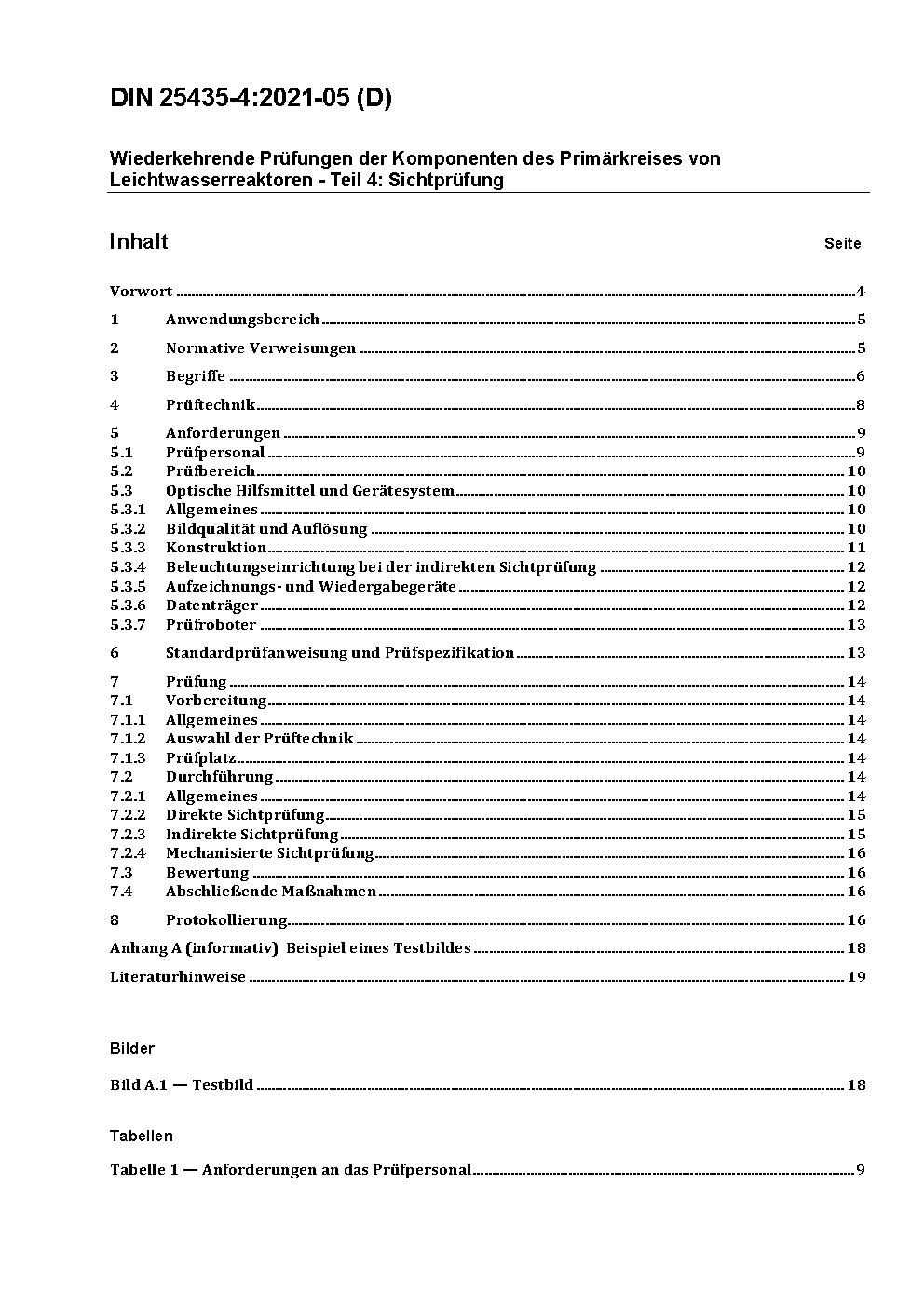 Wiederkehrende Prüfungen der Komponenten des Primärkreises von Leichtwasserreaktoren - Teil 4: Sichtprüfung