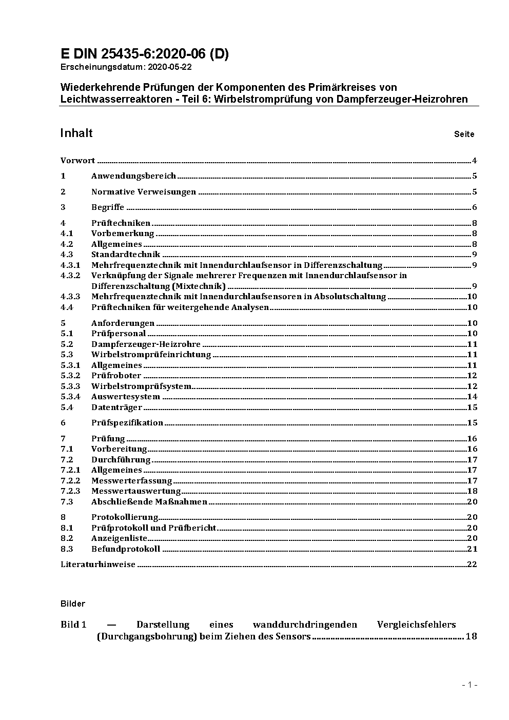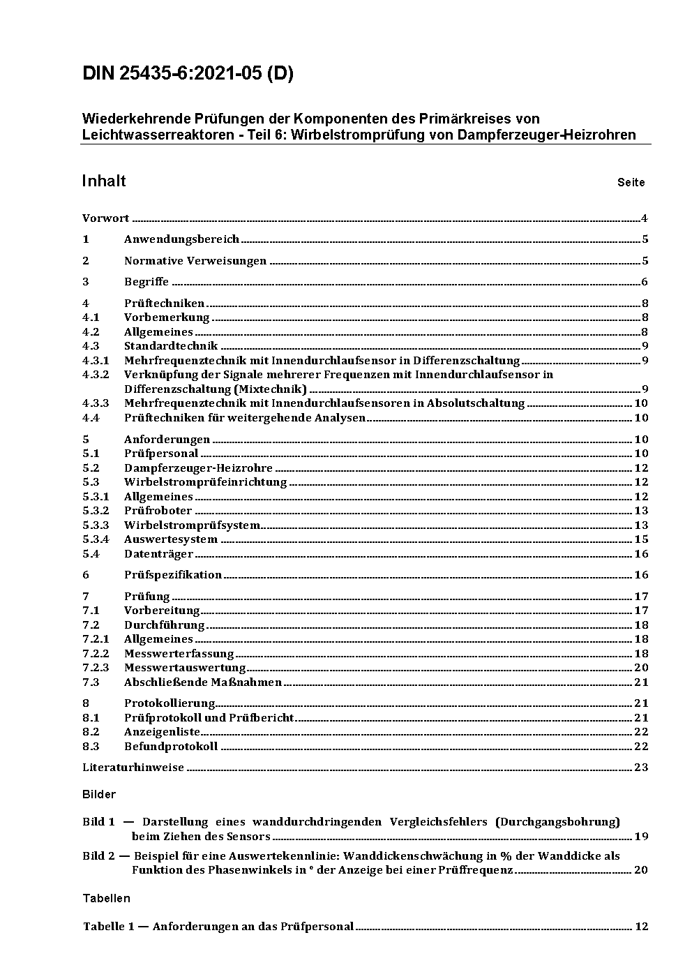 Wiederkehrende Prüfungen der Komponenten des Primärkreises von Leichtwasserreaktoren - Teil 6: Wirbelstromprüfung von Dampferzeuger-Heizrohren