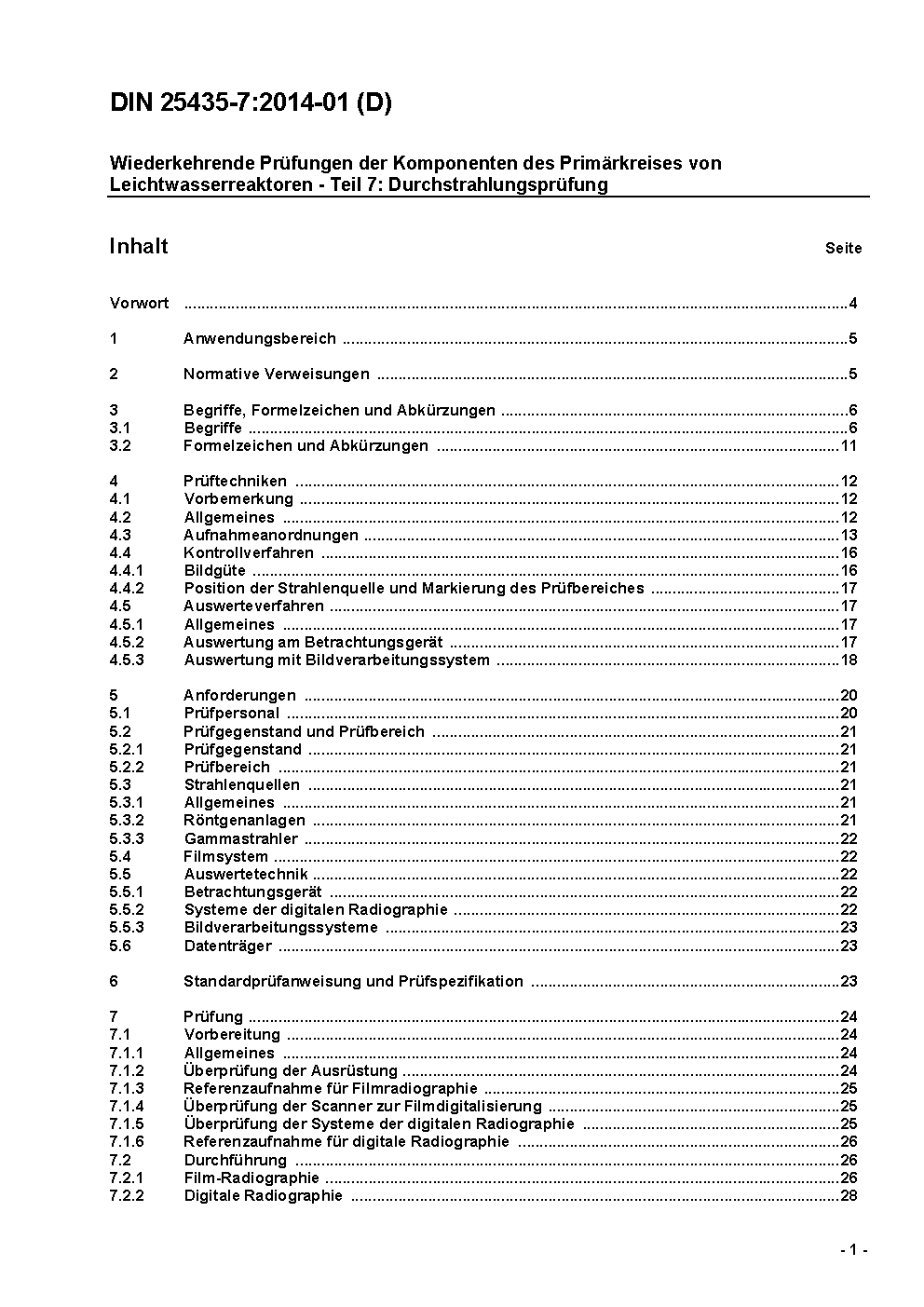 Wiederkehrende Prüfungen der Komponenten des Primärkreises von Leichtwasserreaktoren - Teil 7: Durchstrahlungsprüfung