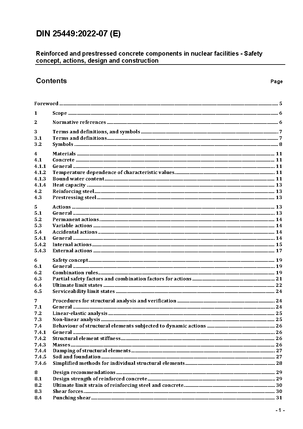 Reinforced and prestressed concrete components in nuclear facilities - Safety concept, actions, design and construction.