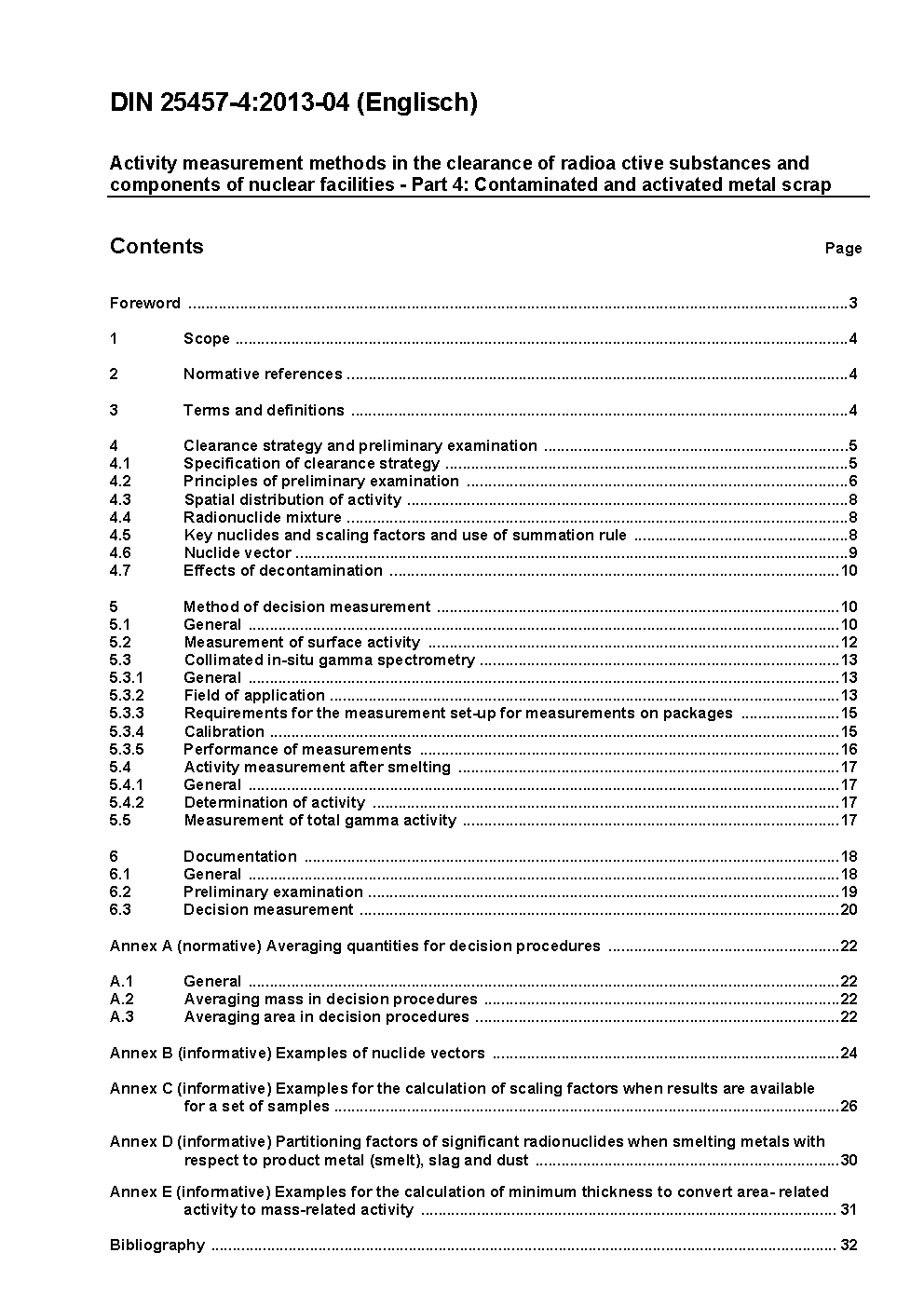 Aktivitätsmessverfahren für die Freigabe von radioaktiven Stoffen und kerntechnischen Anlagenteilen - Teil 4: Kontaminierter und aktivierter Metallschrott