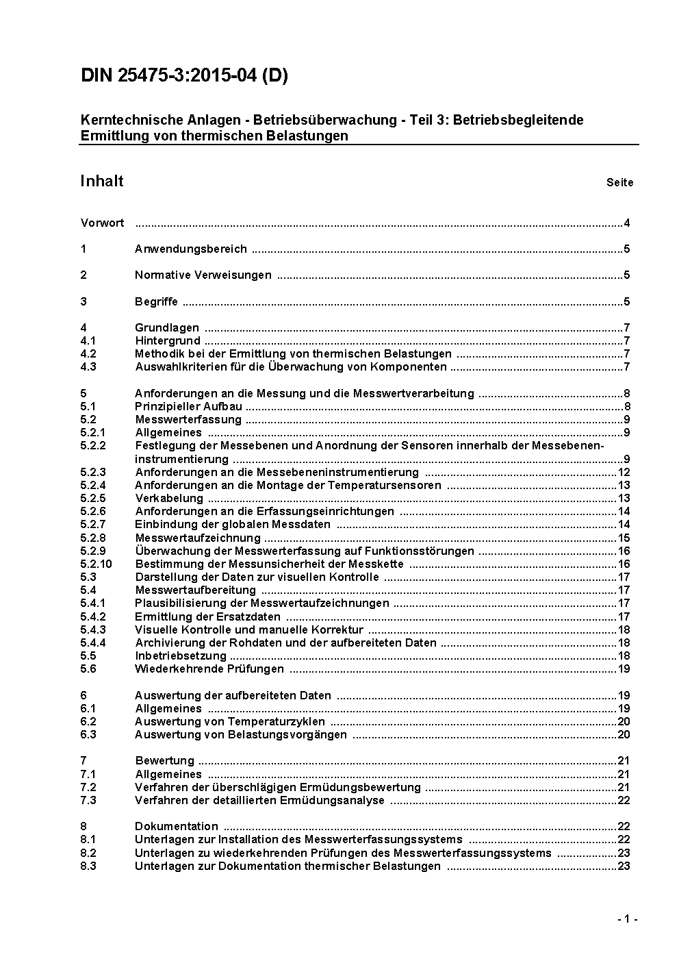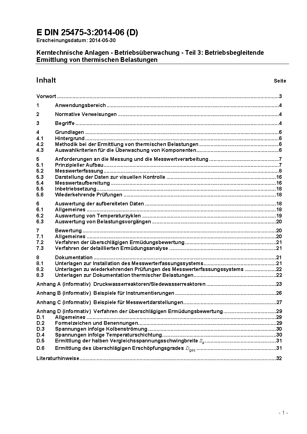 Kerntechnische Anlagen - Betriebsüberwachung - Teil 3: Betriebsbegleitende Ermittlung von thermischen Belastungen