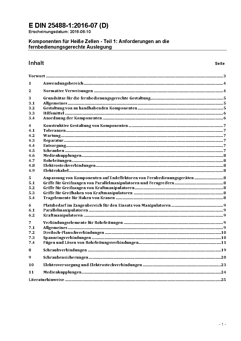 Komponenten für Heiße Zellen - Teil 1: Anforderungen an die fernbedienungsgerechte Auslegung