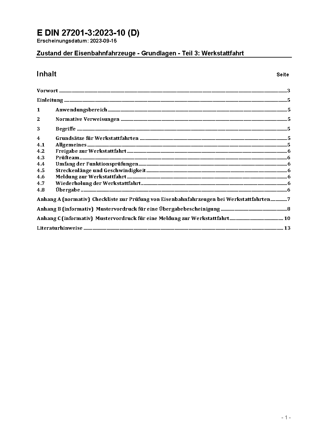 Zustand der Eisenbahnfahrzeuge - Grundlagen - Teil 3: Werkstattfahrt