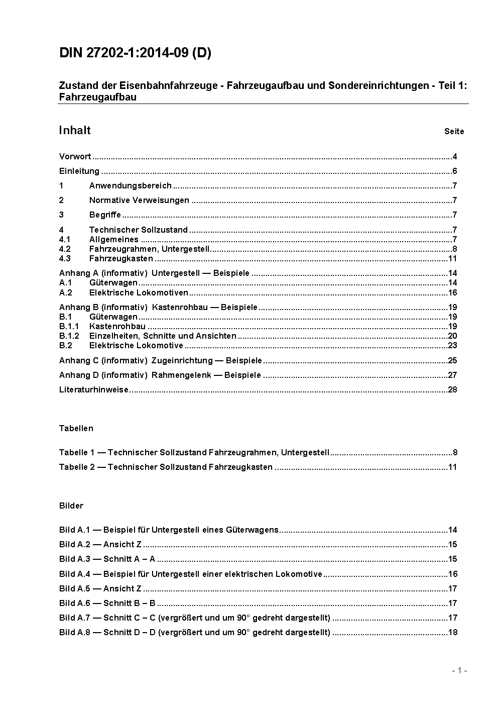 Zustand der Eisenbahnfahrzeuge - Fahrzeugaufbau und Sondereinrichtungen - Teil 1: Fahrzeugaufbau / Achtung: Übergangsfrist, festgelegt durch DIN 27202-1 (2014-09), bis 2015-02-28 beachten.