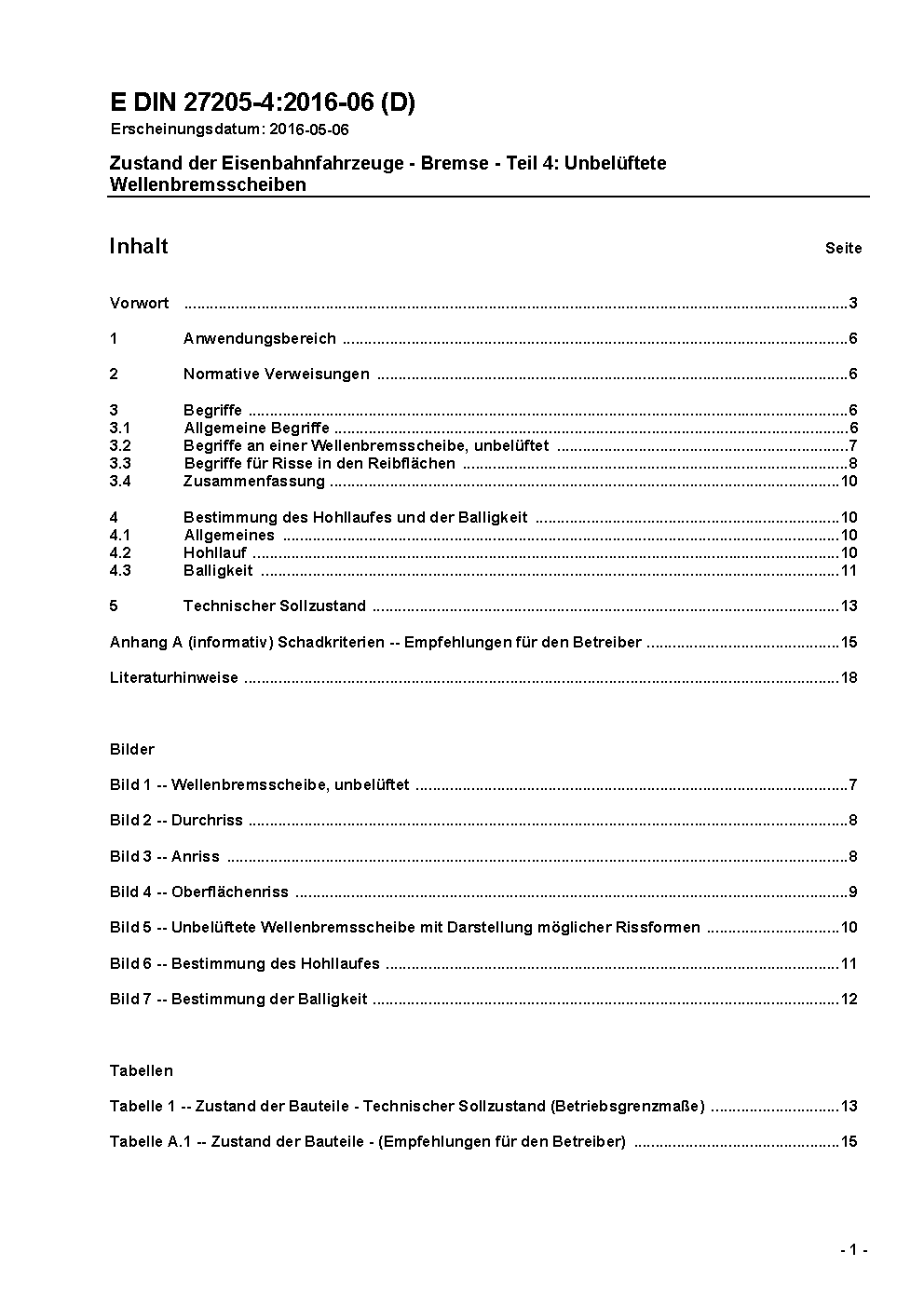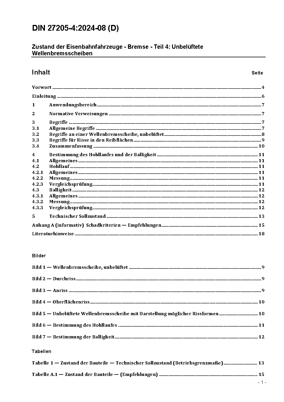 Zustand der Eisenbahnfahrzeuge - Bremse - Teil 4: Unbelüftete Wellenbremsscheiben