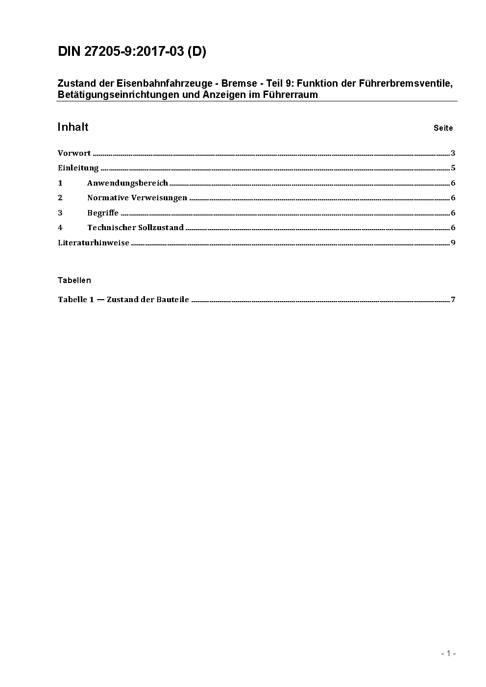 Zustand der Eisenbahnfahrzeuge - Bremse - Teil 9: Funktion der Führerbremsventile, Betätigungseinrichtungen und Anzeigen im Führerraum
