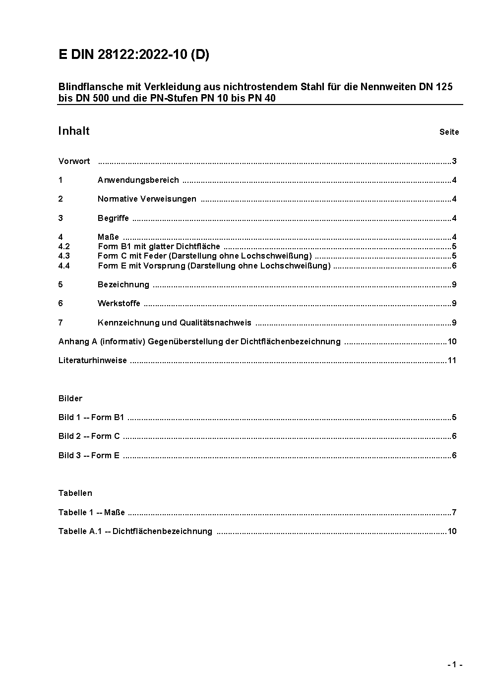Blindflansche mit Verkleidung aus nichtrostendem Stahl für die Nennweiten DN 125 bis DN 500 und die PN-Stufen PN 10 bis PN 40