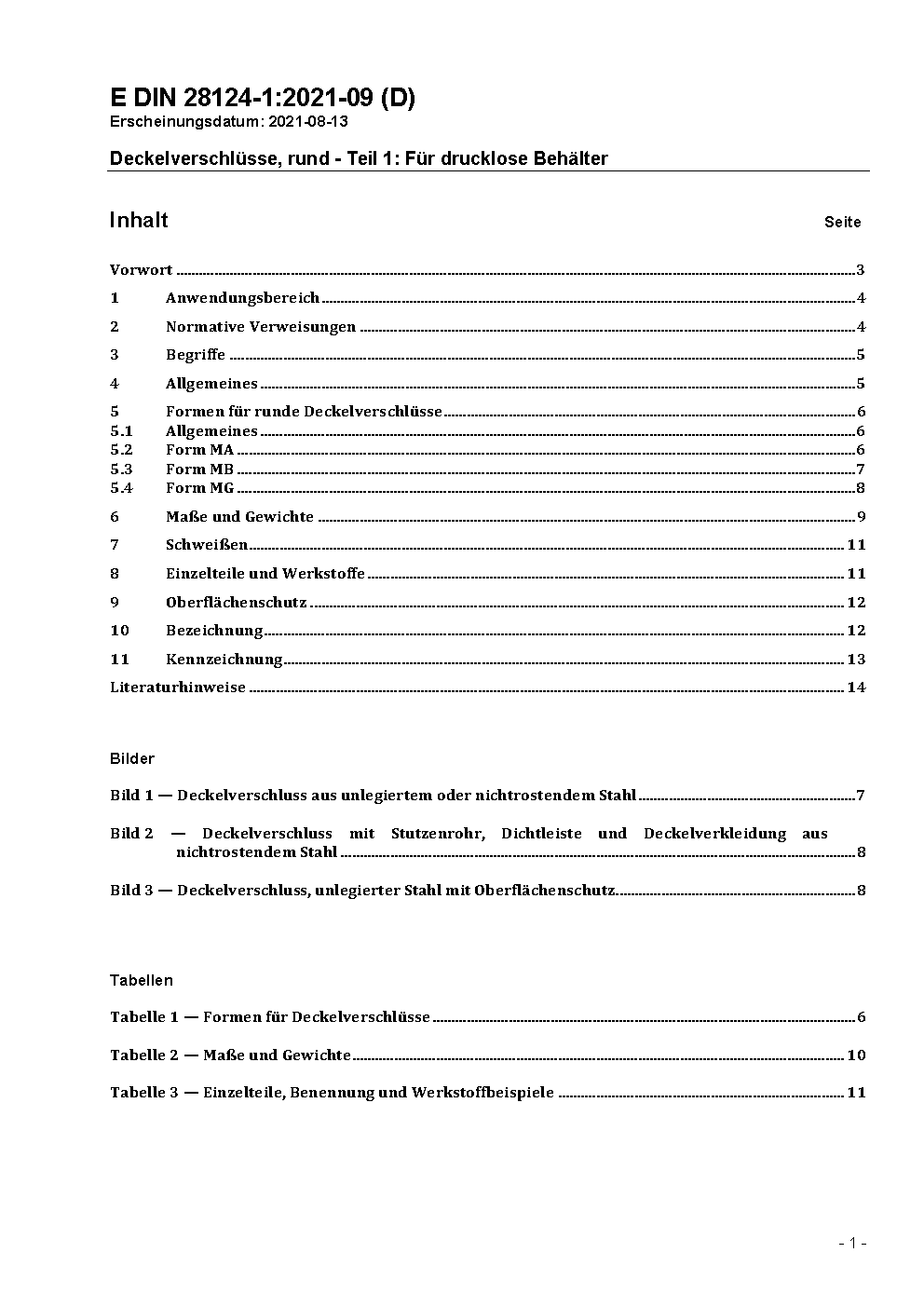 Mannlochverschlüsse - Teil 1: Für drucklose Behälter