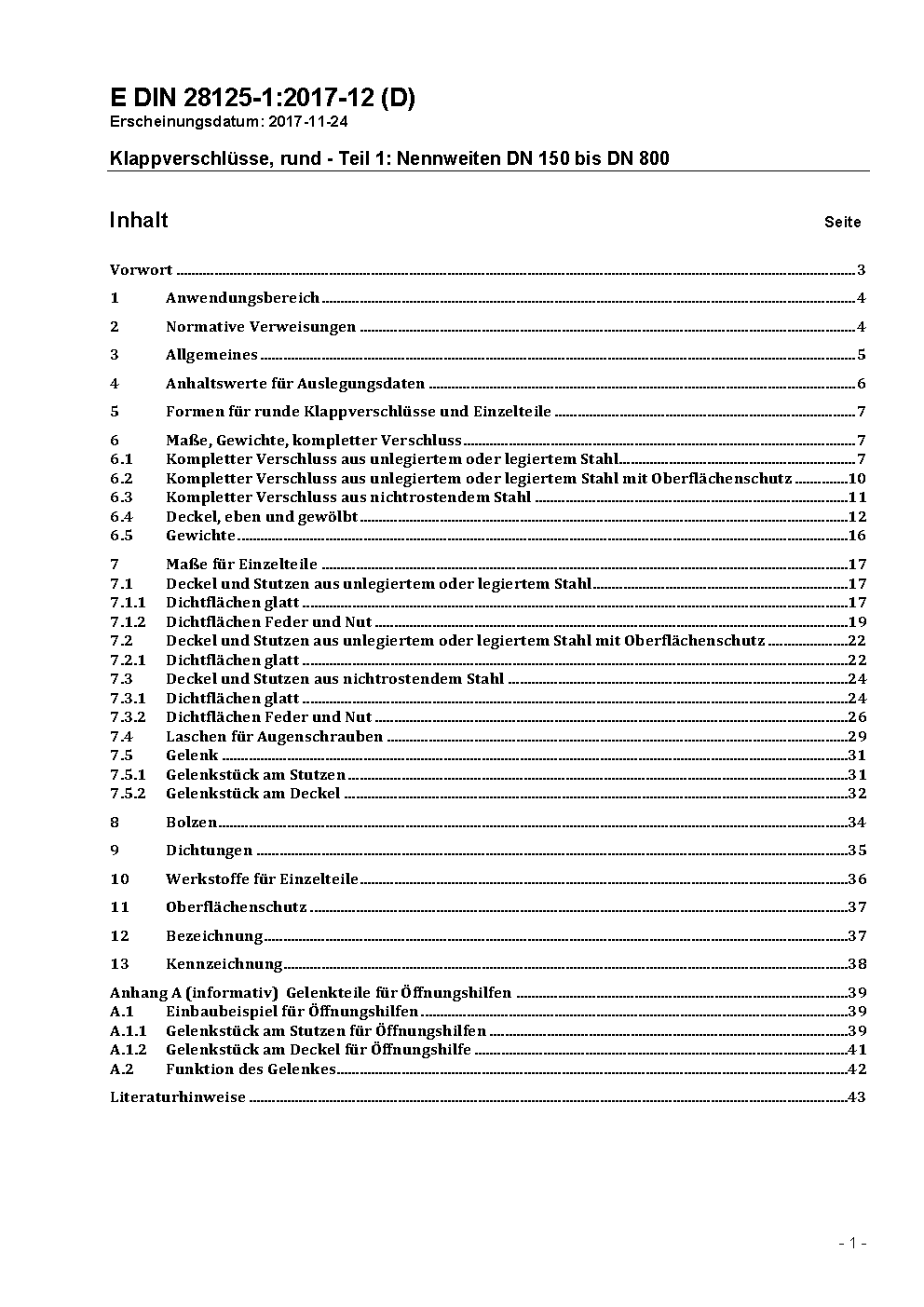 Round hinged closures - Part 1: Nominal diameter DN 150 to DN 800