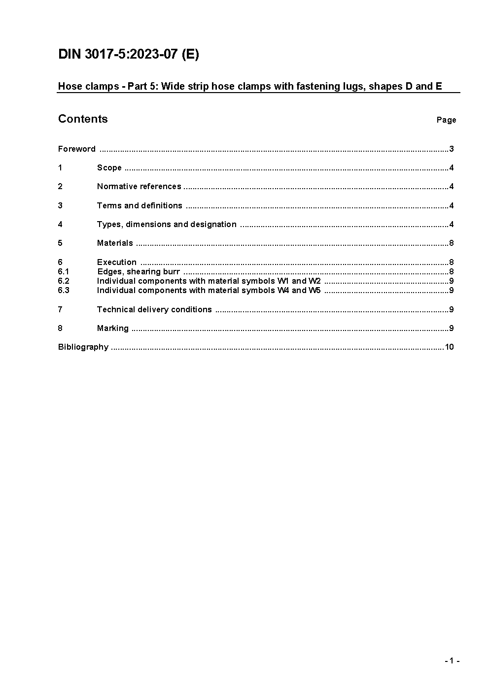 Hose clamps - Part 5: Wide strip hose clamps with fastening lugs; Types D and E