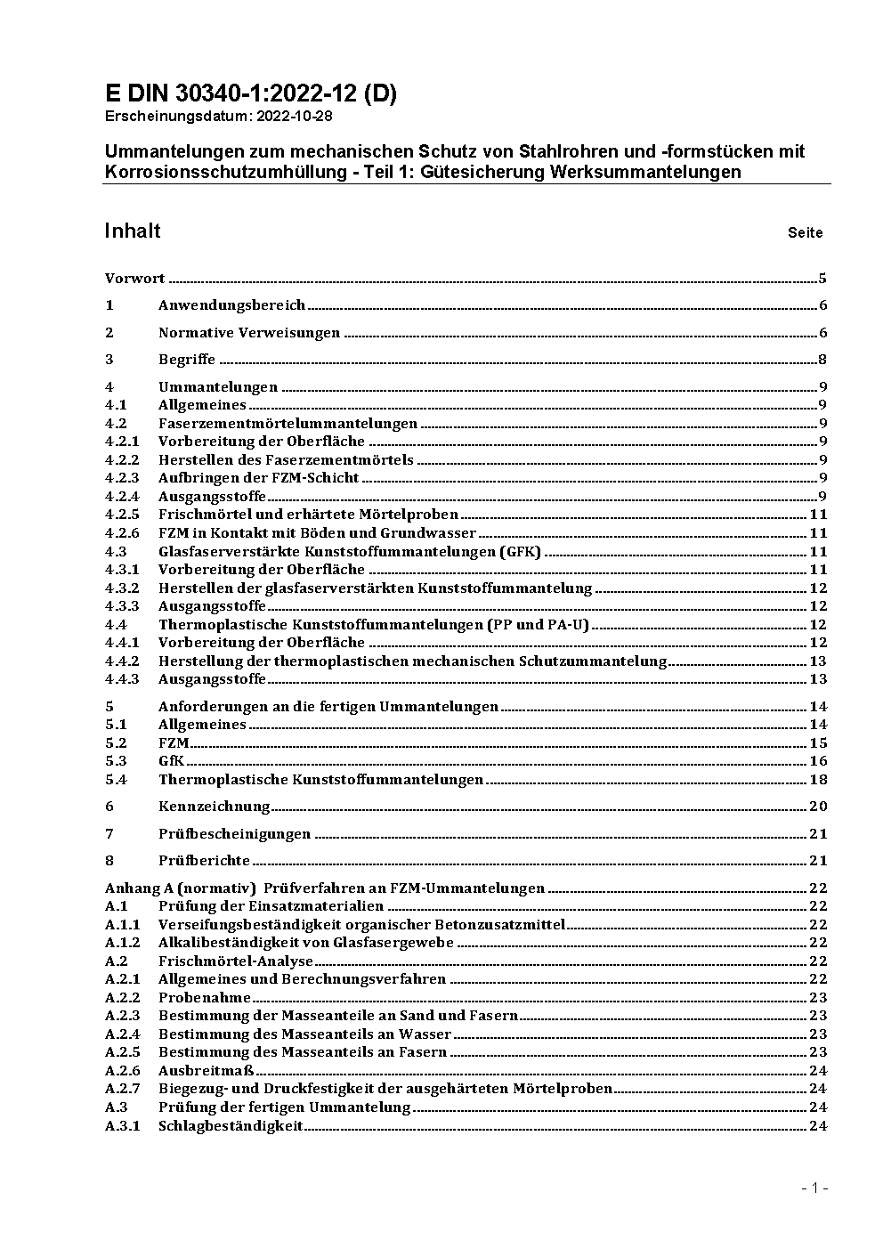 Ummantelungen zum mechanischen Schutz von Stahlrohren und -formstücken mit Korrosionsschutzumhüllung - Teil 1: Gütesicherung Werksummantelungen / Achtung: Diese Norm ist Bestandteil des DVGW Regelwerks.
