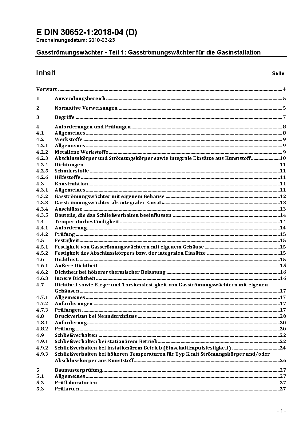 Gasströmungswächter - Teil 1: Gasströmungswächter für die Gasinstallation