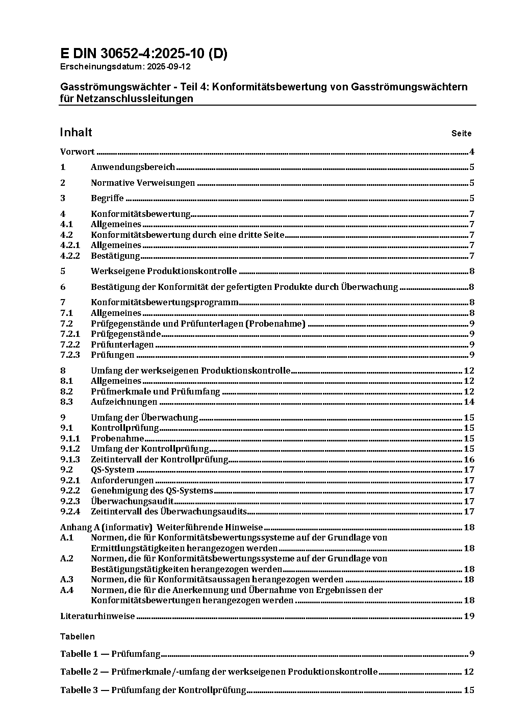 Gasströmungswächter - Teil 4: Konformitätsbewertung von Gasströmungswächtern für Netzanschlussleitungen / Achtung: Gilt in Verbindung mit DIN 30652-2 (2025-10)