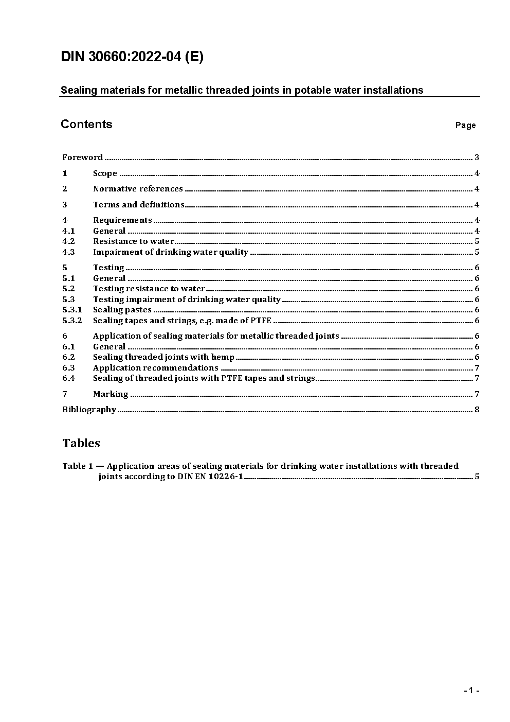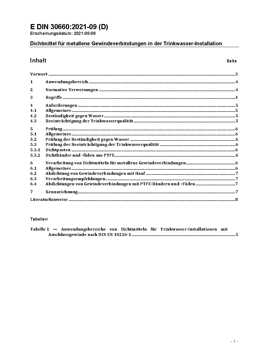 Dichtungsmittel für die Gas- und Wasserversorgung sowie für Wasserheizungsanlagen - Nichtaushärtende Dichtmittel und Polytetrafluoroethylen (PTFE)-Bänder für metallene Gewindeverbindungen der Hausinstallation