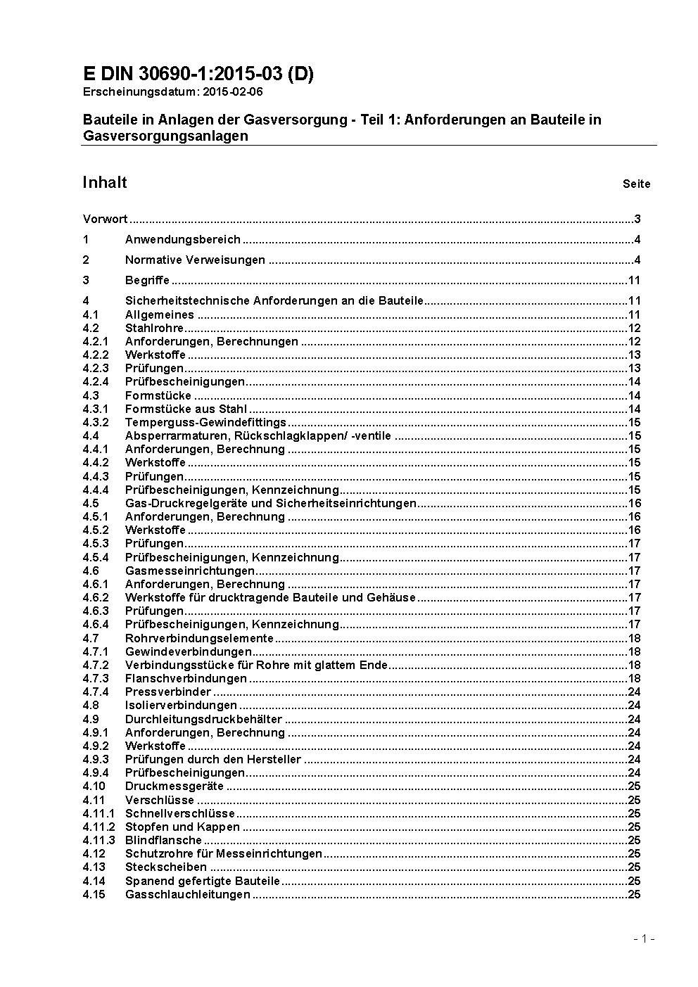 Bauteile in Anlagen der Gasversorgung - Teil 1: Anforderungen an Bauteile in Gasversorgungsanlagen