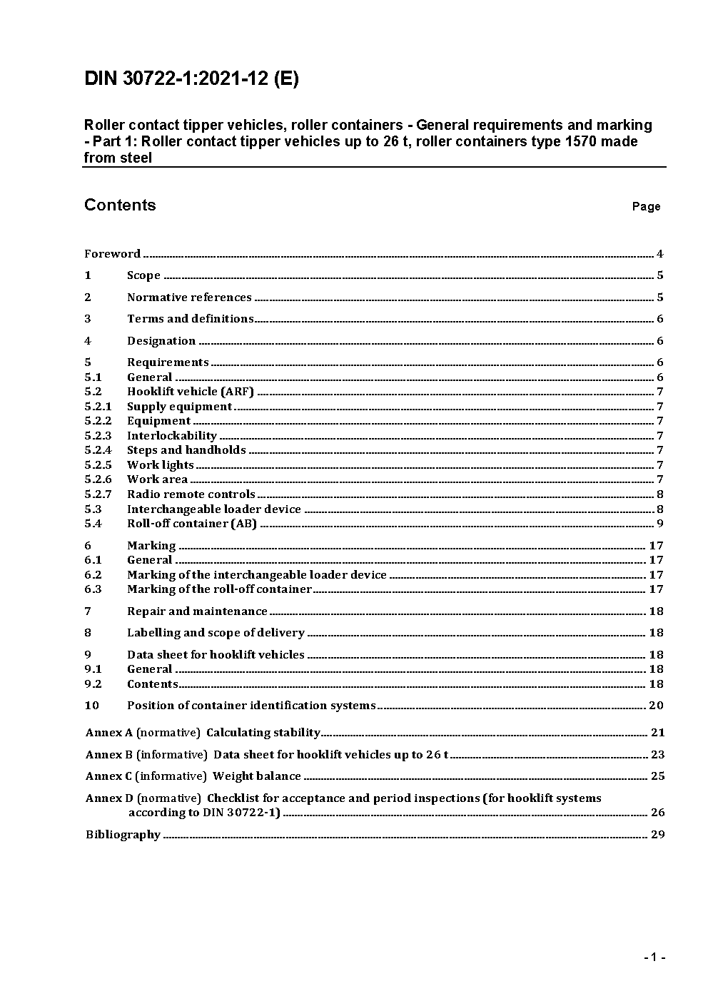 Roller contact tipper vehicles, roller containers - Part 1: Roller contact tipper vehicles up to 26 t, roller containers type 1570 made from steel
