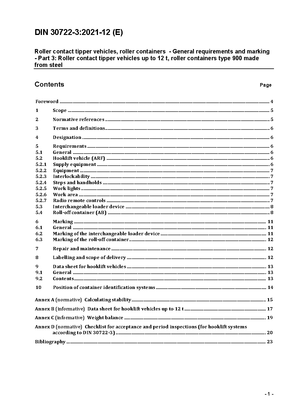 Roller contact tipper vehicles, roller containers - Part 3: Roller contact tipper vehicles up to 12 t, roller containers type 900 made from steel