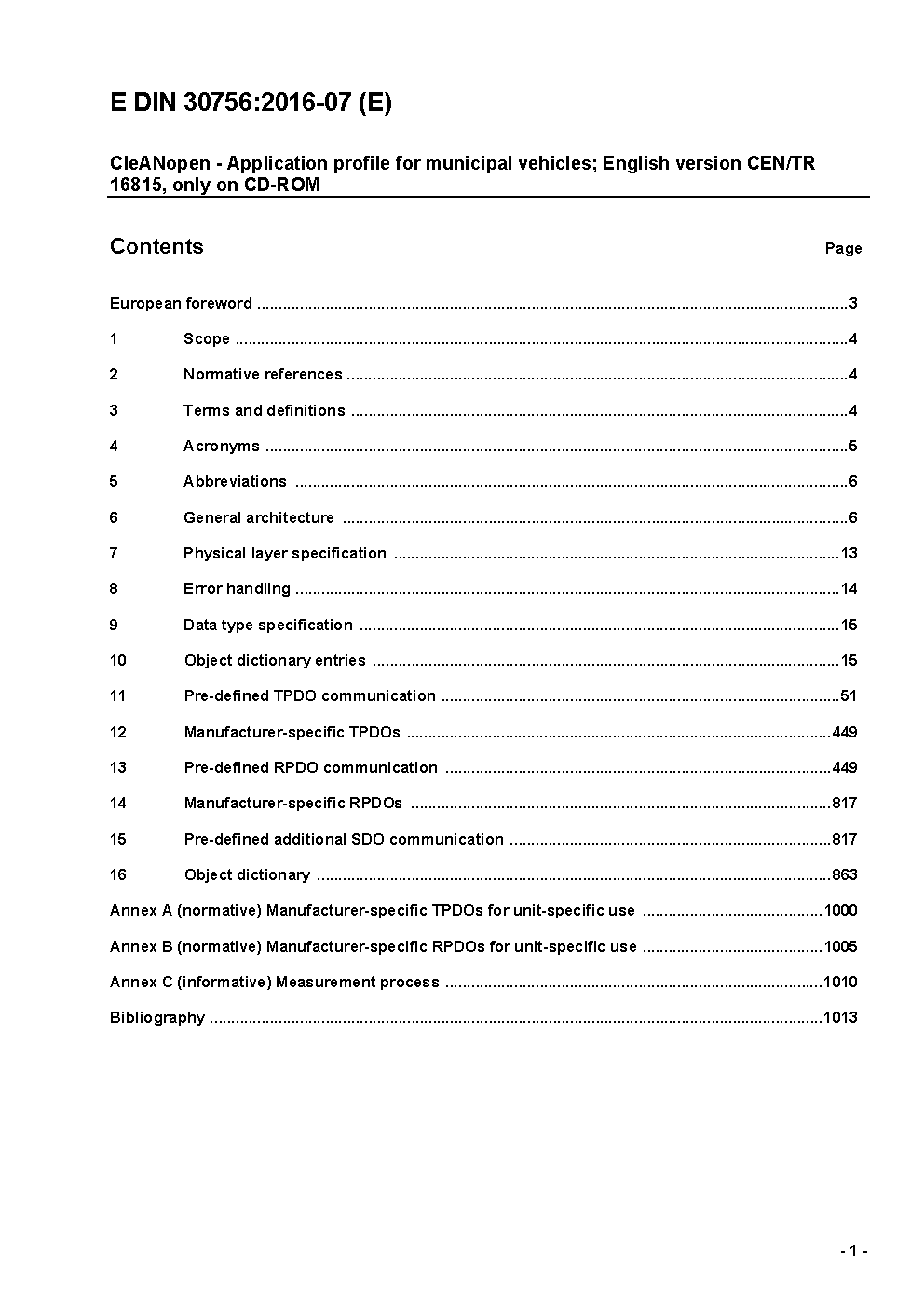 CleANopen - Application profile for municipal vehicles; English version CEN/TR 16815, only on CD-ROM.